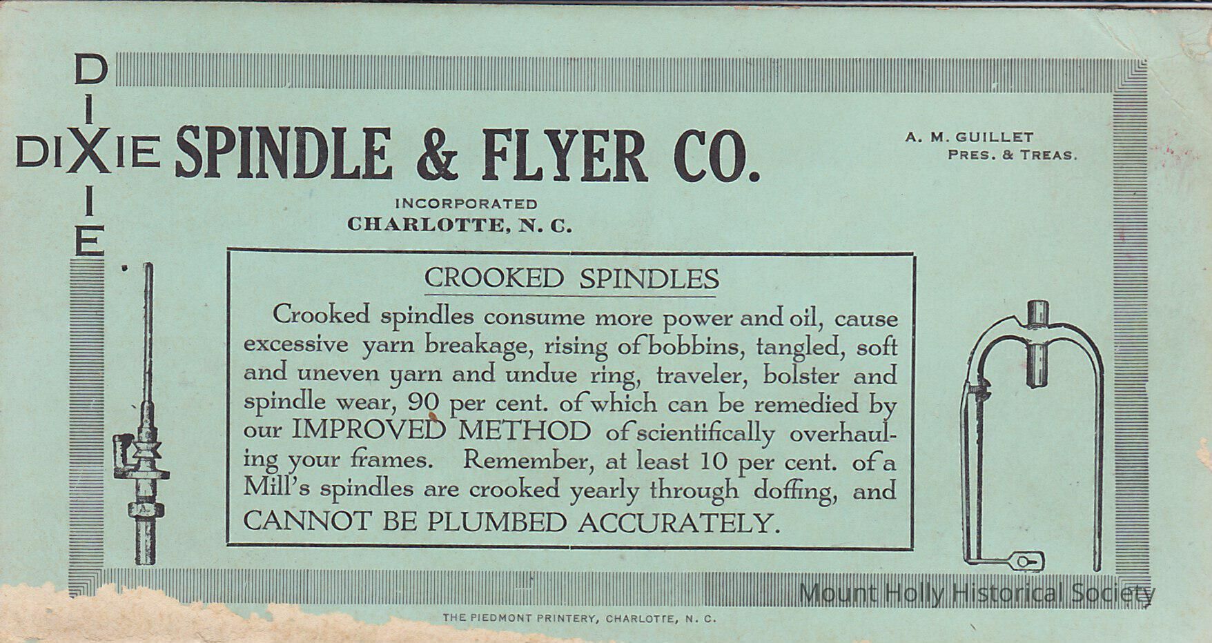 Ad - Dixie Spindle and Flyer Co., "Crooked Spindles," Charlotte, NC