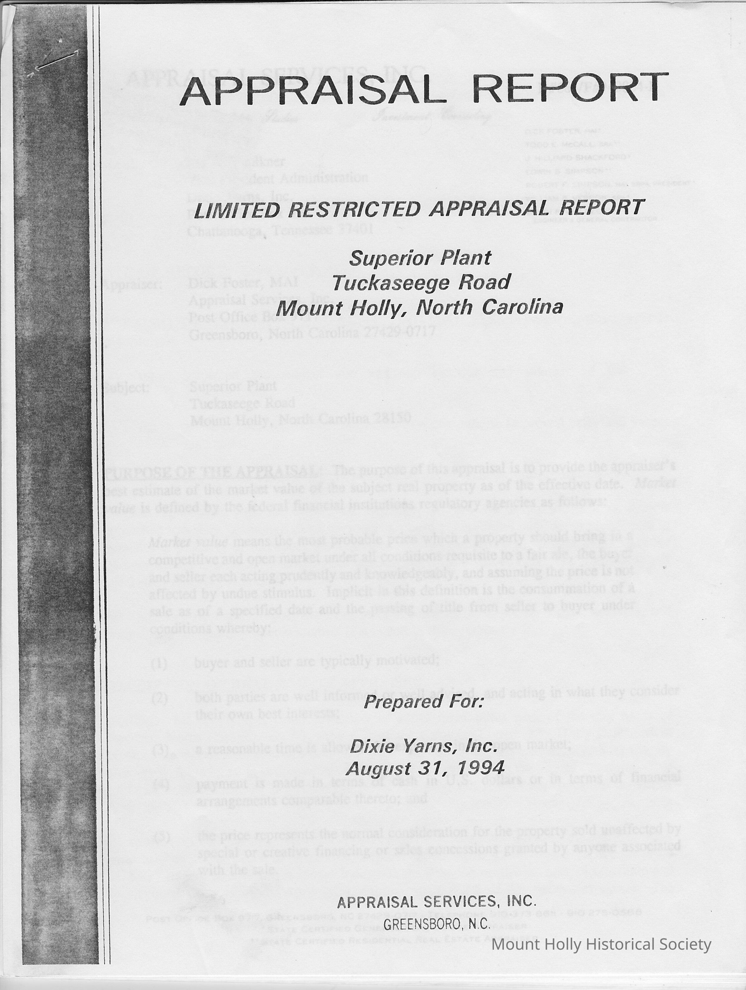 Appraised Report for the Superior Plant, Tuckaseege Rd., Mount Holly before demolition