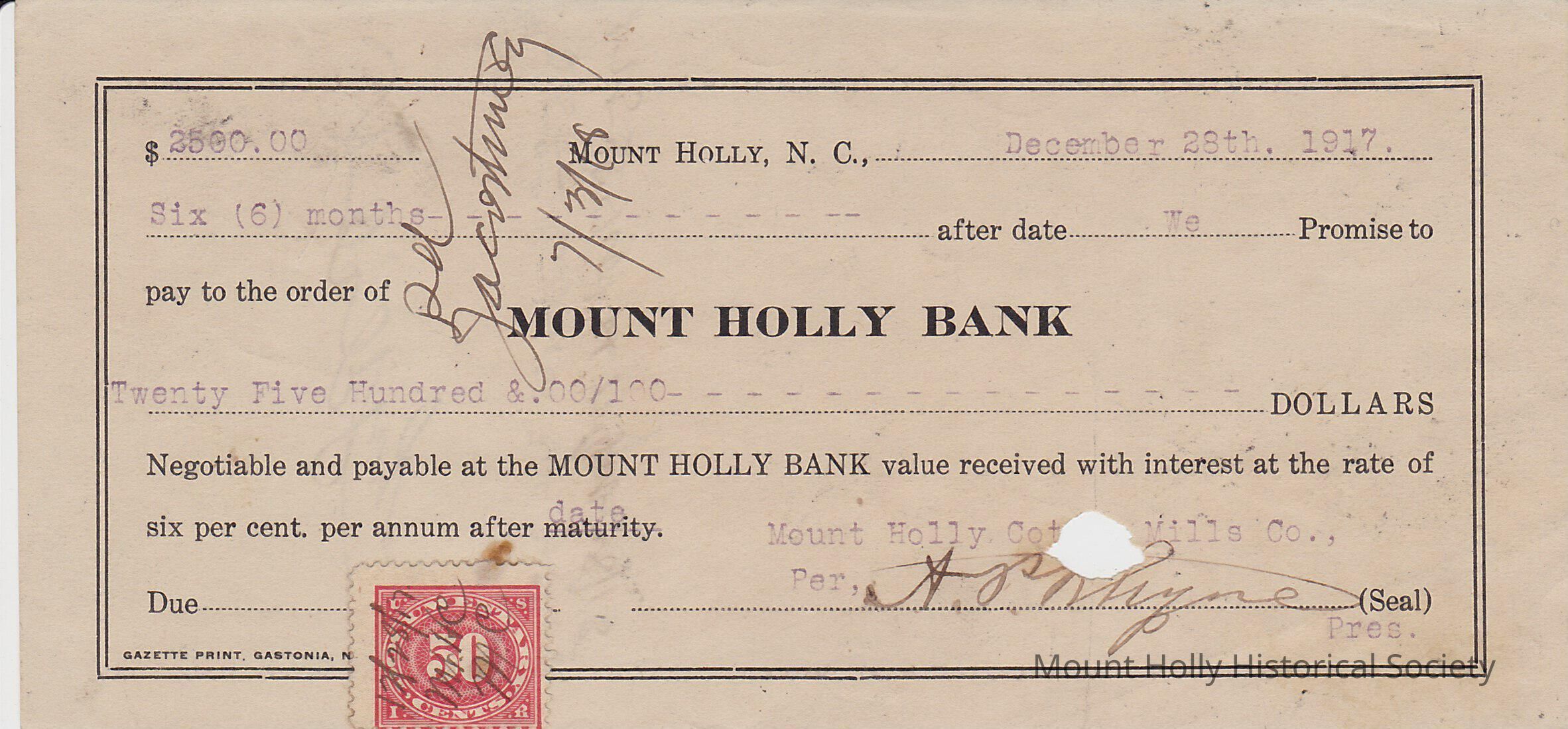 Mount Holly Bank Check to Mount Holly Cotton Mill - AP Rhyne (2)