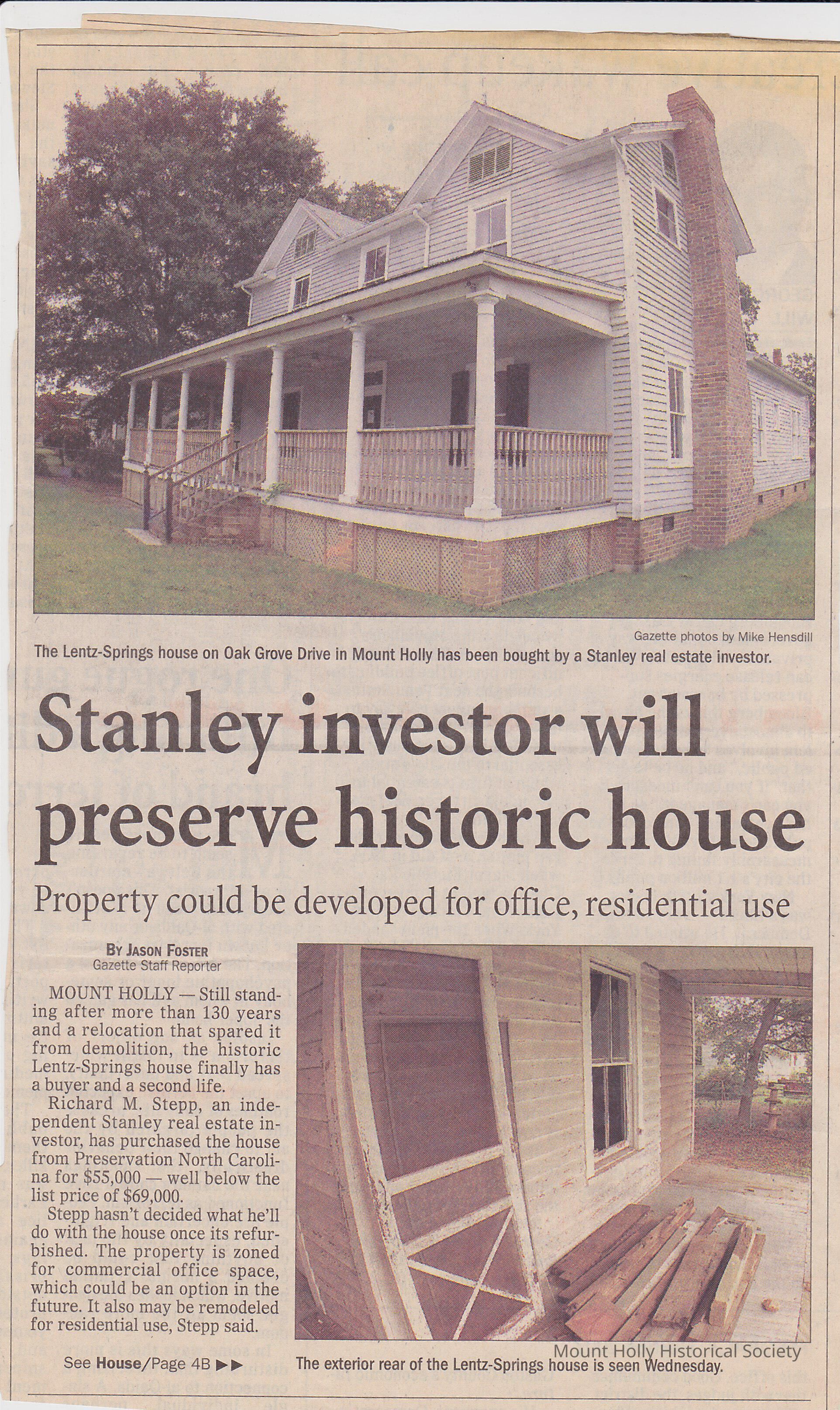 Gastonia Gazette - Lentz-Springs house on Oak Grove, purchased by Richard Stepp