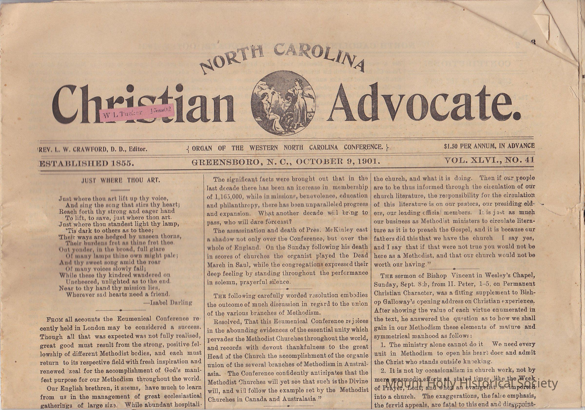 Christian Advocate - Western NC Conference, Greensboro, NC - WL Tucker - Newspaper