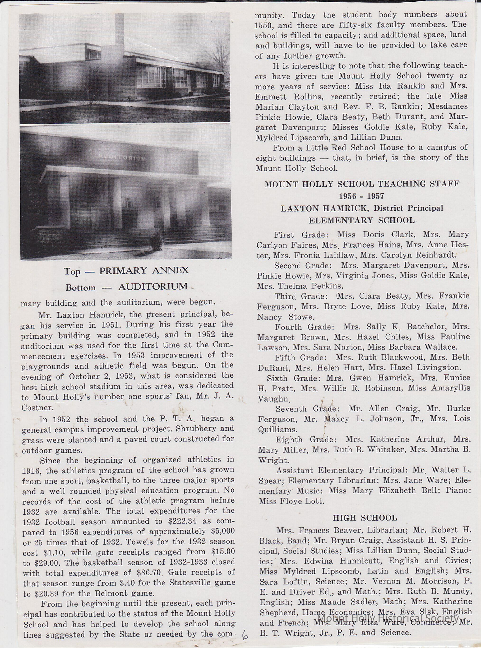 Newspaper Clipping - School History and The 1956 - 1957 Teaching Staff