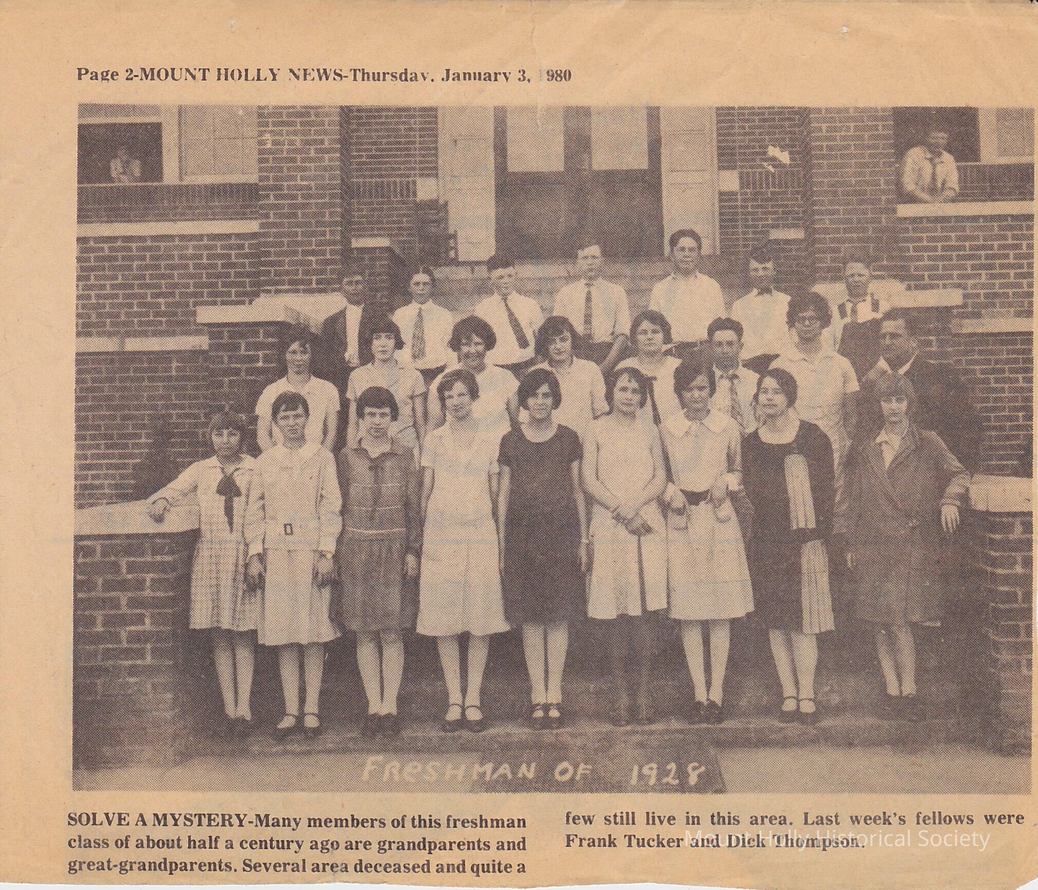 Mount Holly News Clipping - Solve a Mystery / Nostalgia Corner, Mount Holly School - Freshman class of 1928