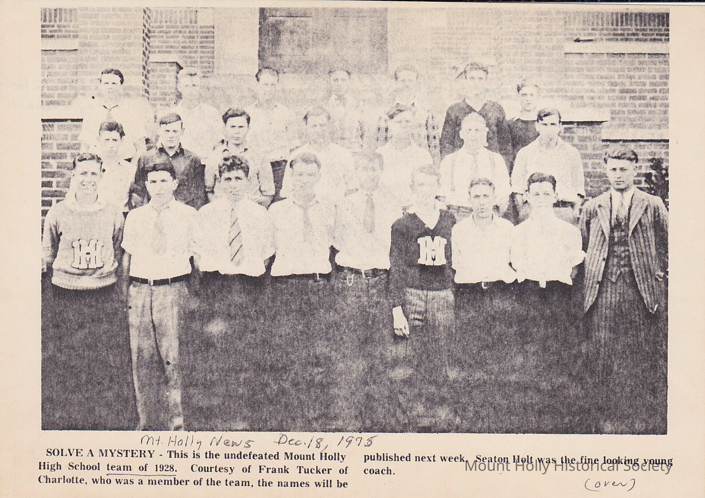 Mount Holly News Clipping - Solve a Mystery / Nostalgia Corner, Mount Holly High School team (football?) 1928