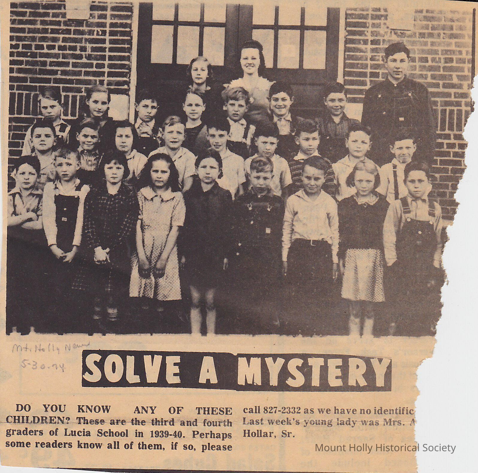 Mount Holly News Clipping - Solve a Mystery / Nostalgia Corner, Lucia School 1939 - 1940 - 3rd and 4th Graders