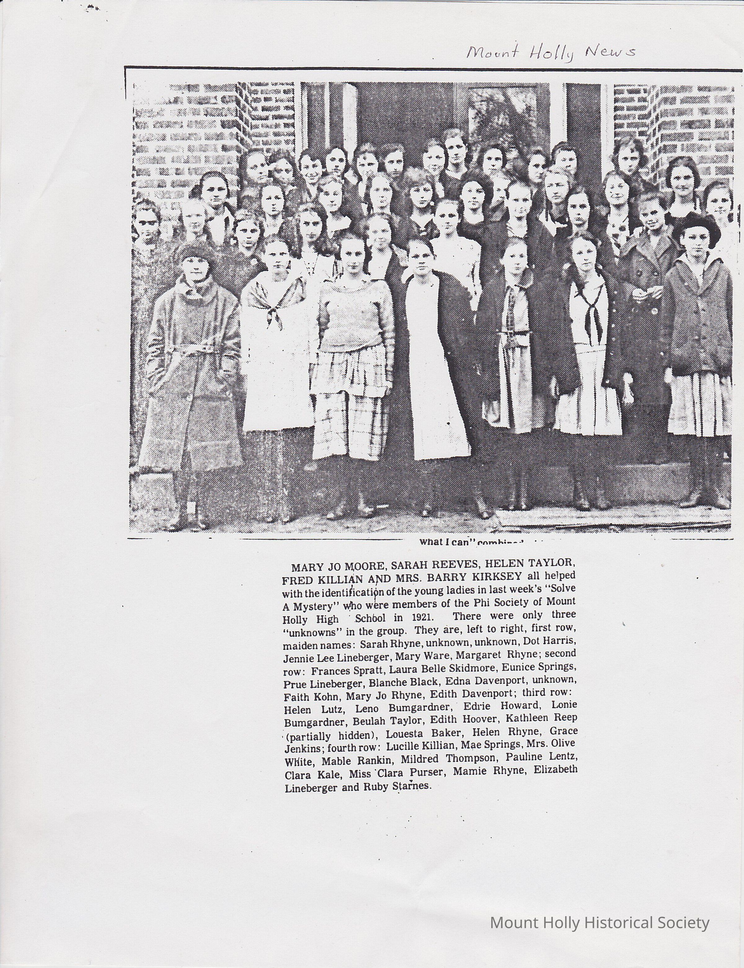 Mount Holly News Clipping - Solve a Mystery / Nostalgia Corner, Mount Holly Grade school - 3rd Graders - 1931