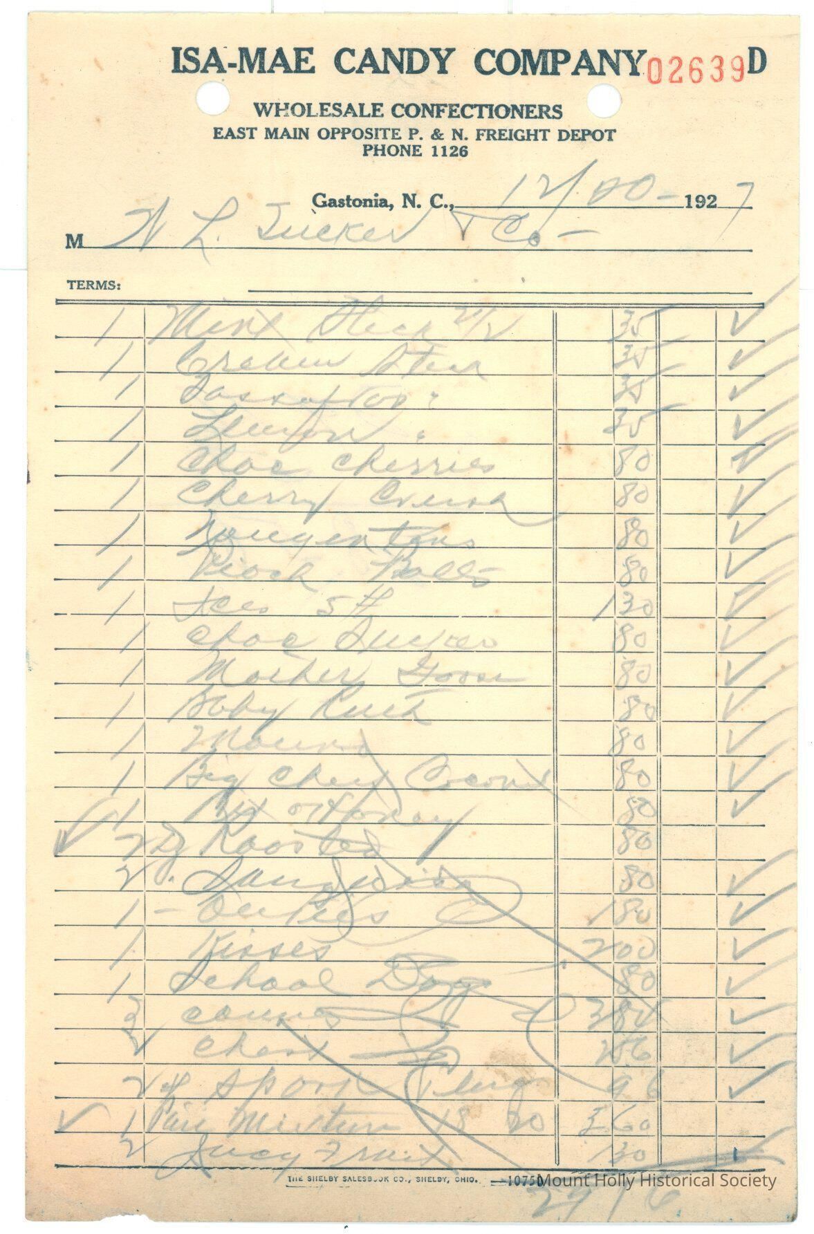 Yet more invoices (only one of this set scanned) from Isa-Mae Candy Co. to W.L. Tucker