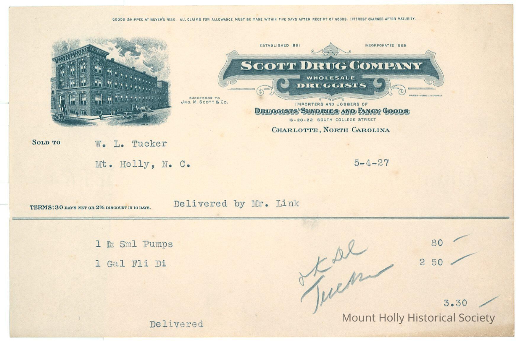 Invoice from Scott Drug Co. to W.L. Tucker