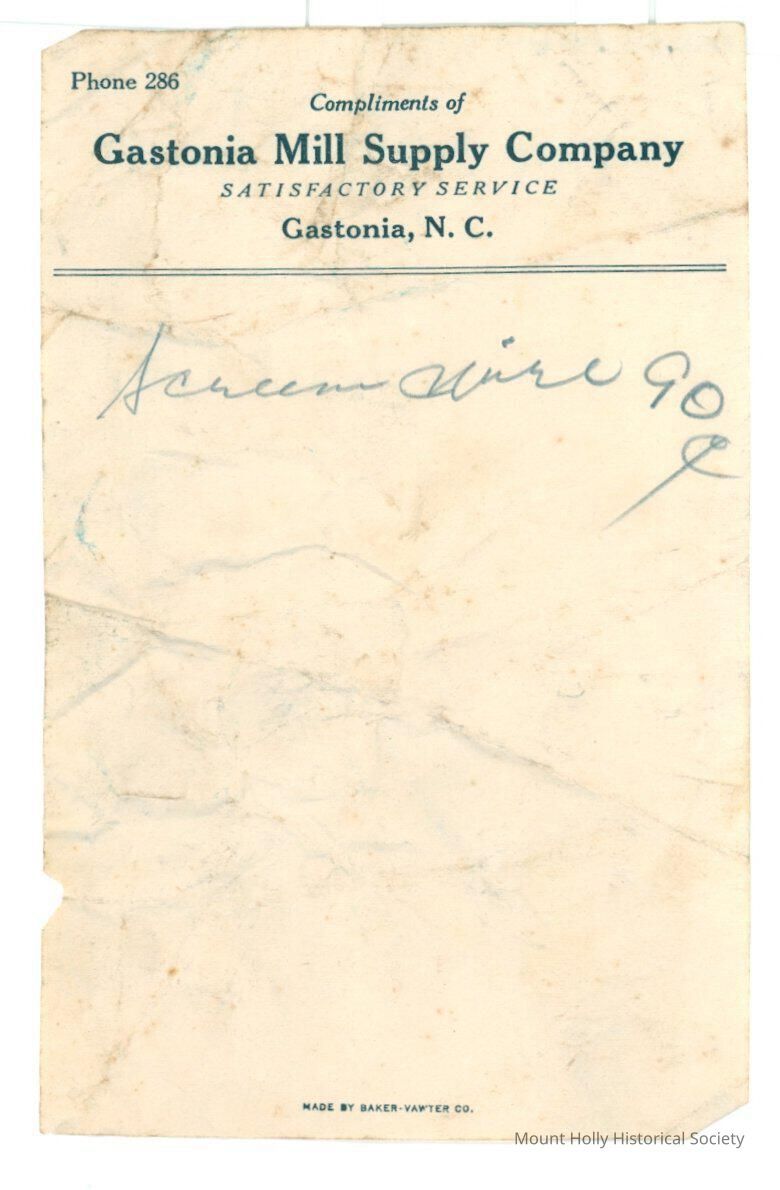 Letterhead of Gastonia Mill Supply Co. w/ handwritten note; message unclear