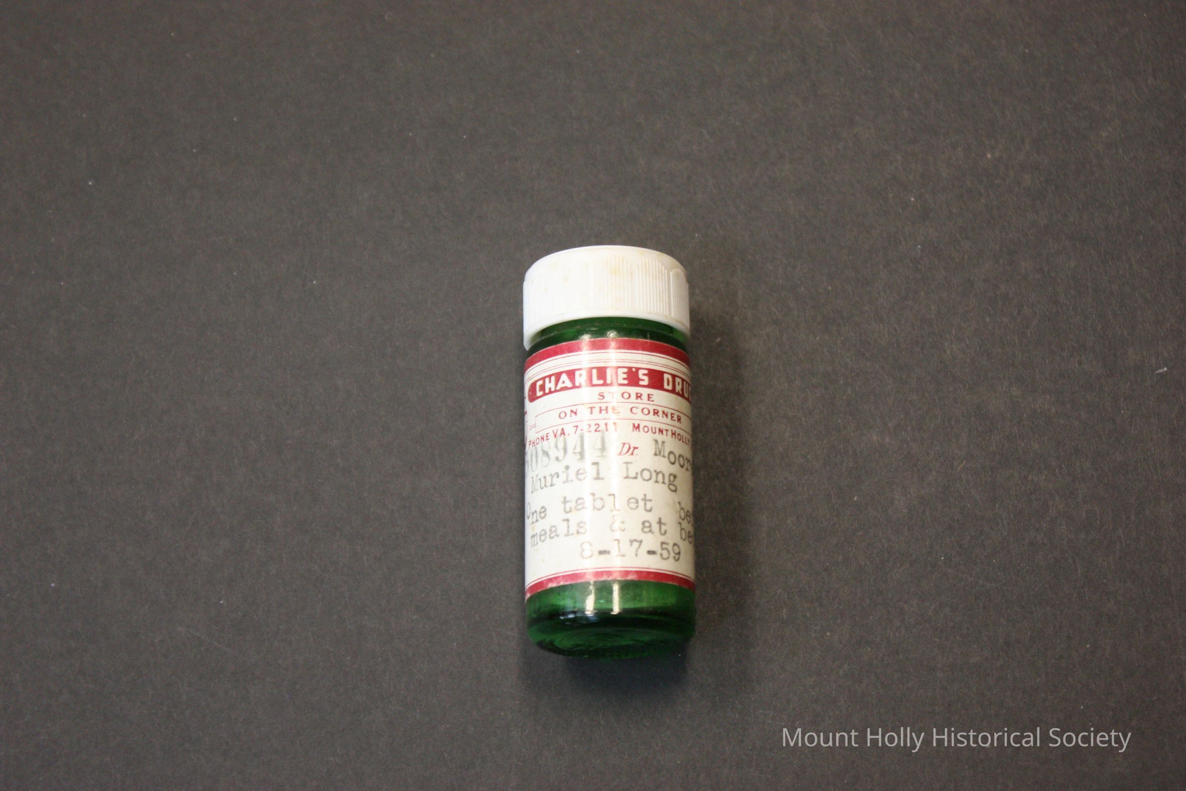 Green medicine bottle - prescribed by Dr. Moore - for Muriel Long - 8/17/1959