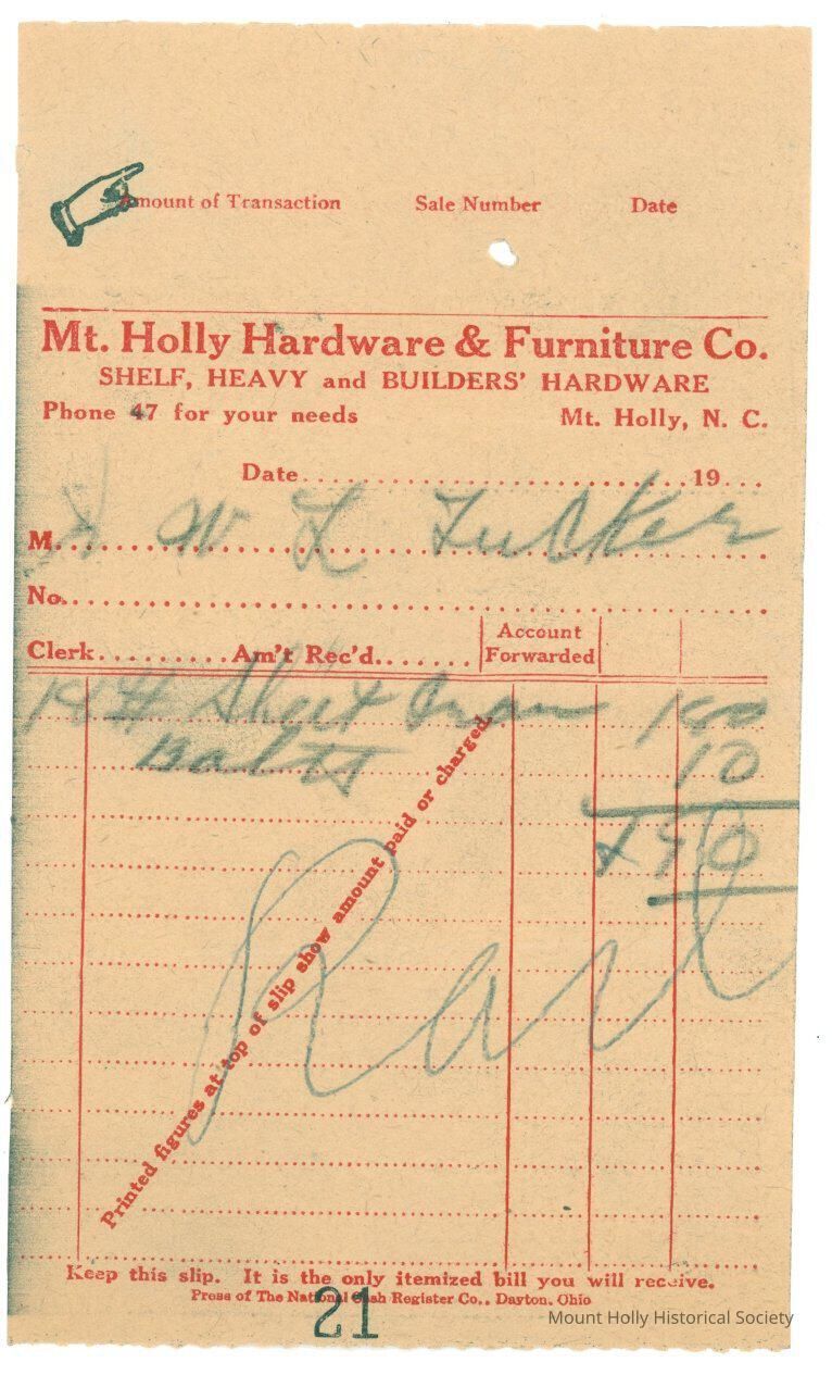 Invoice from Mt. Holly Hardware & Furniture Co. to W.L. Tucker