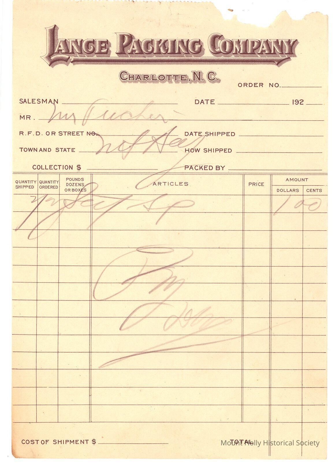 Multiple invoices (only one scanned) from Lance Packing Co. in Charlotte to Tucker Service Station