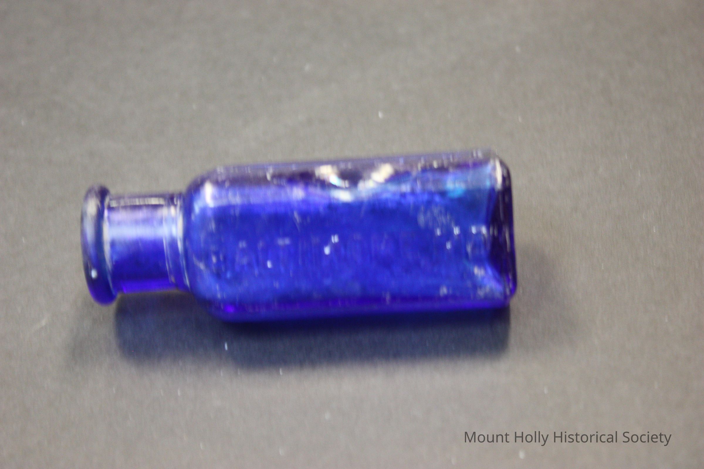 Blue glass stoppered bottler (without stopper) embossed with "Sharp and Dohne, Baltimore MD"