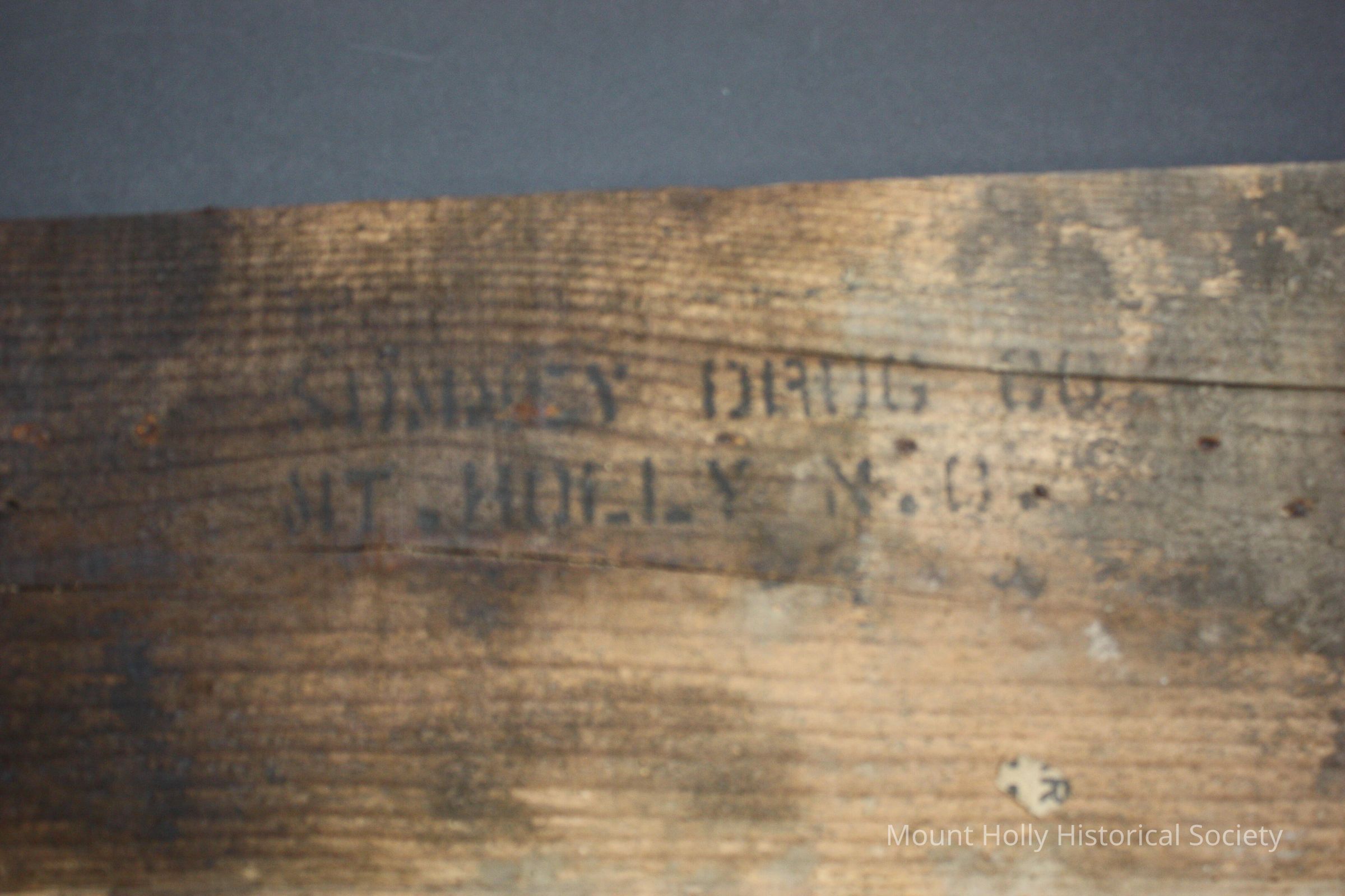 A 1" x12" x 23" wooden slat stenciled with "Summey Drug. Co. Mt. Holly NC" Probable shipping crate lid or side