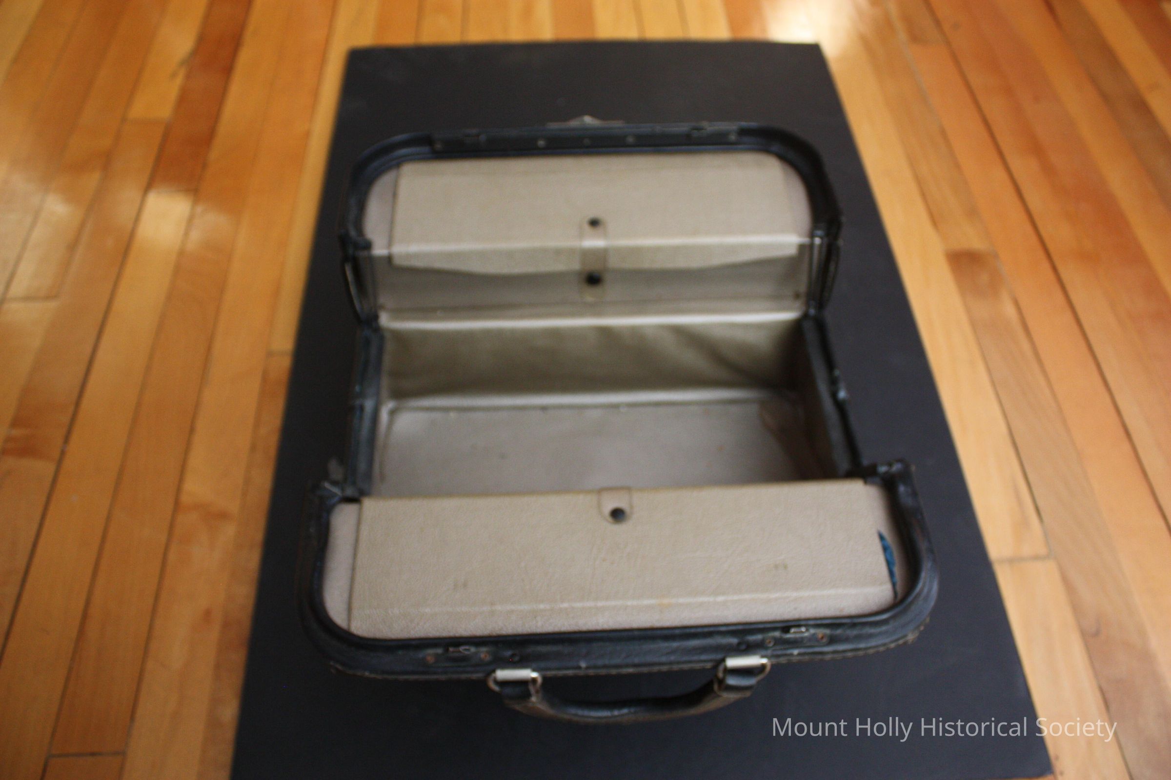 Large doctor's leather bag - top opening, fold back with double handles and smap closure. Compartments and loops inside.
