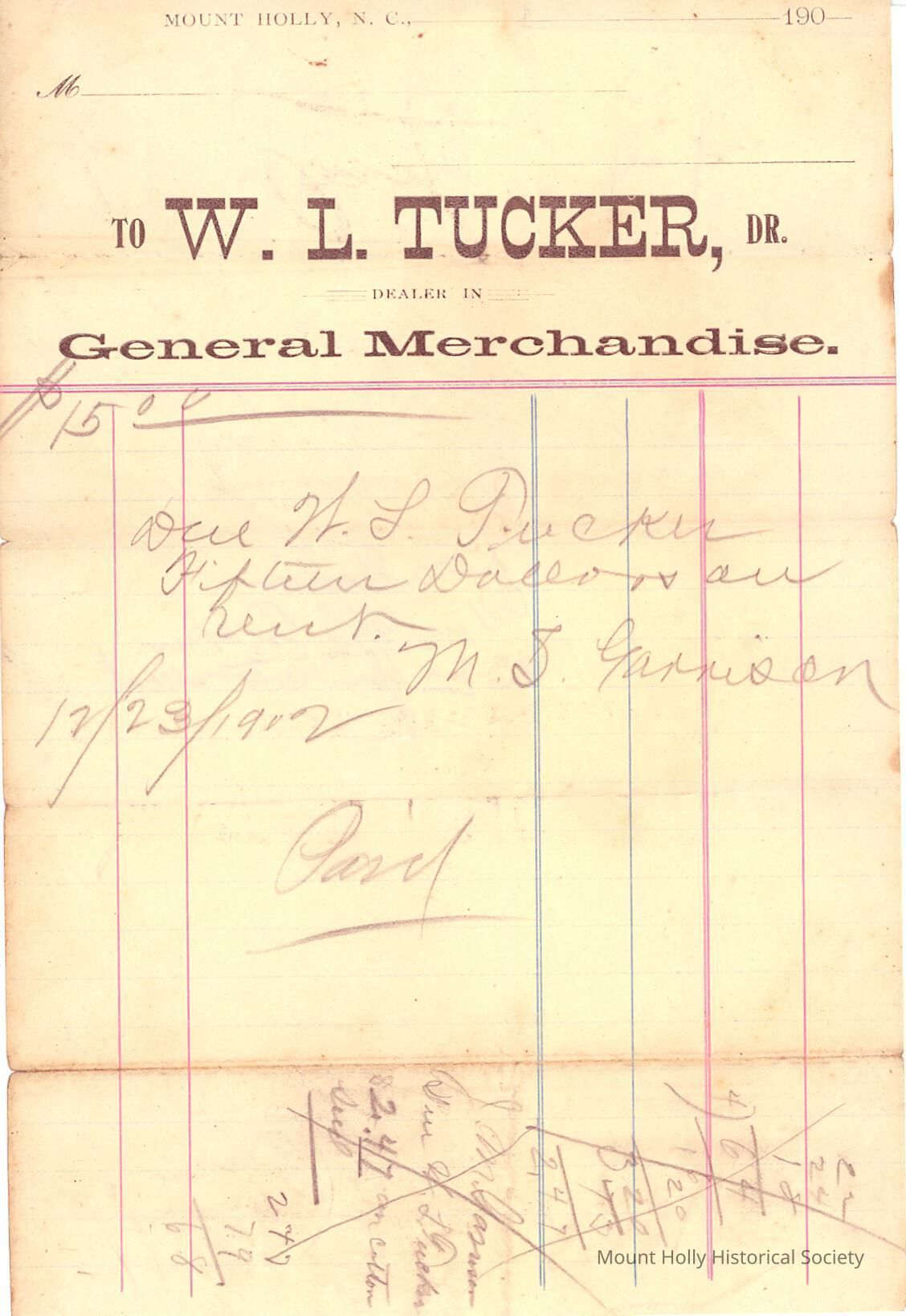 W.L. Tucker General merchandise bill.
