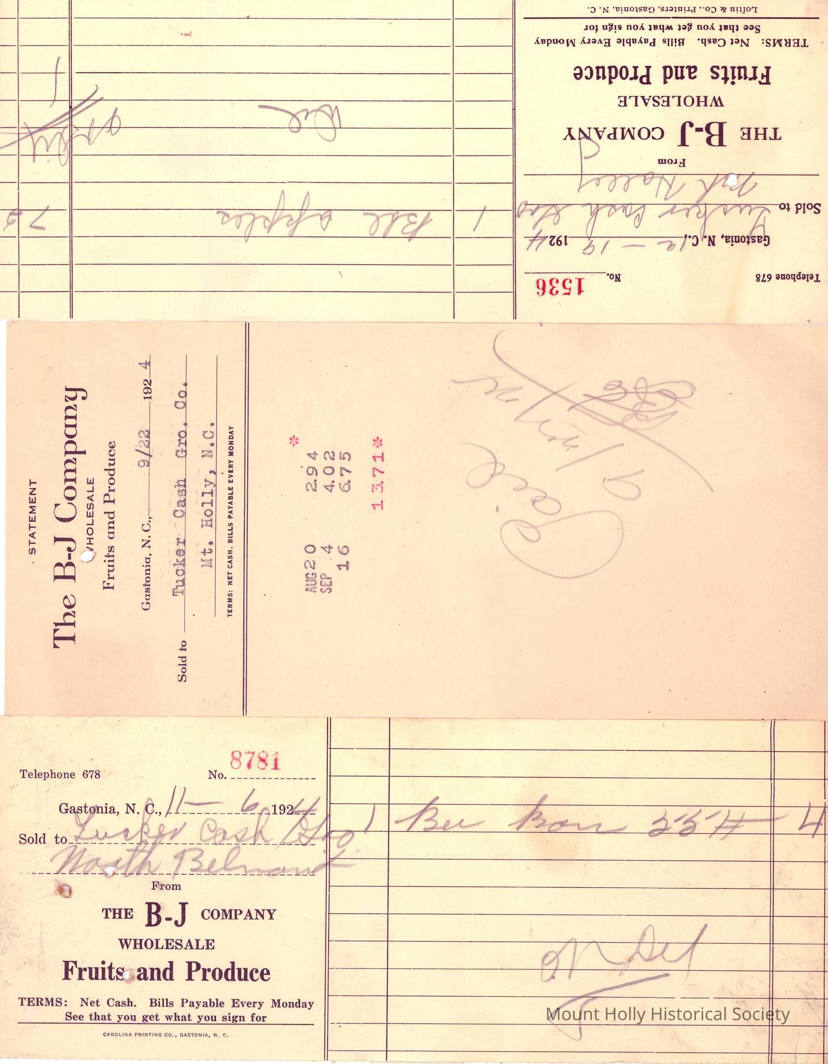 B-J Company wholesale slip.