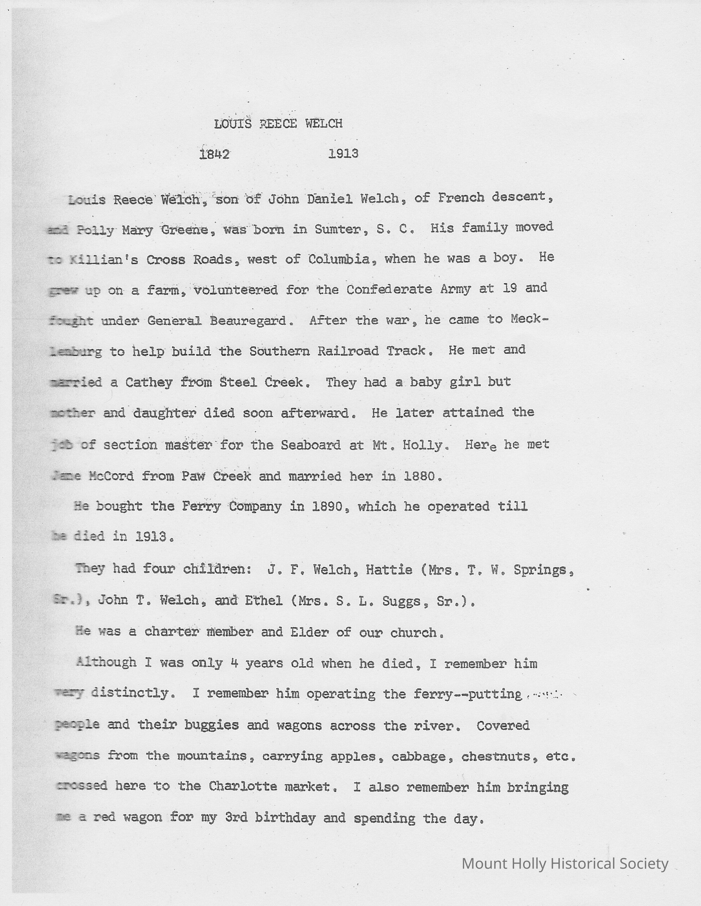 Biography of Louis Reece Welch 1842-1913 (First Presbyterian Church Window)