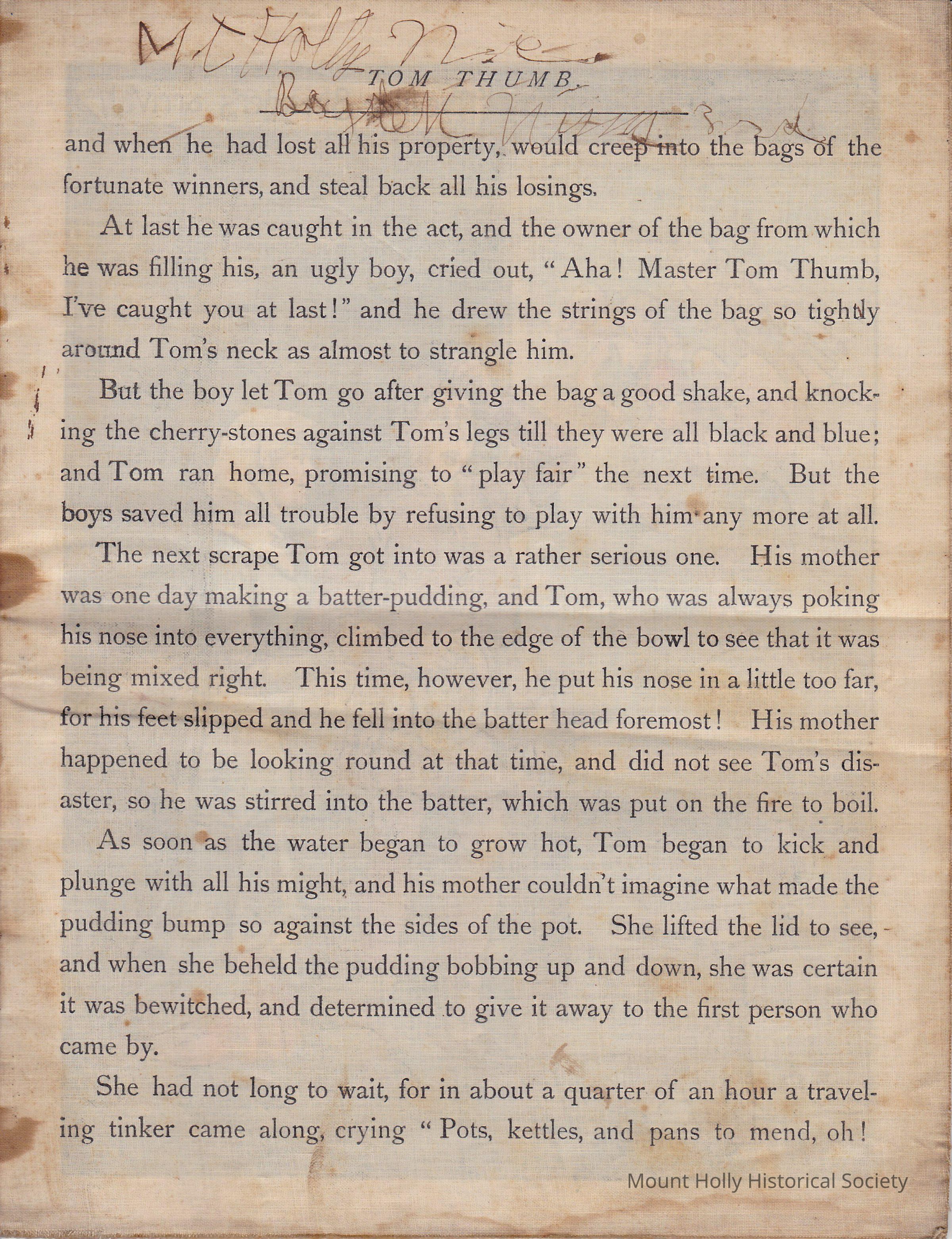 Portion of an Elementary School Reader, Tom Thumb, Boyden Nims