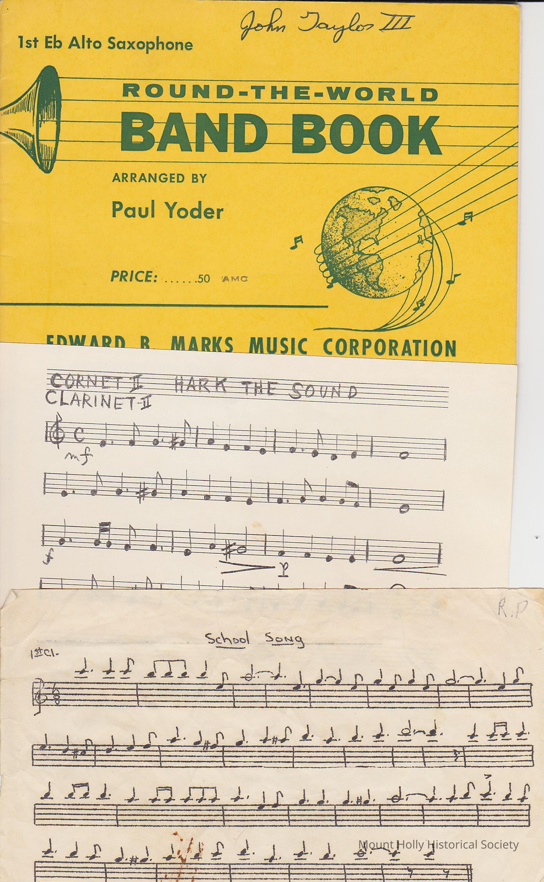 Band Sheet Music, MHHS, John Taylor III, Various Songs Round-The-Wolrd Band Book "School Song" "Hark the Sound"