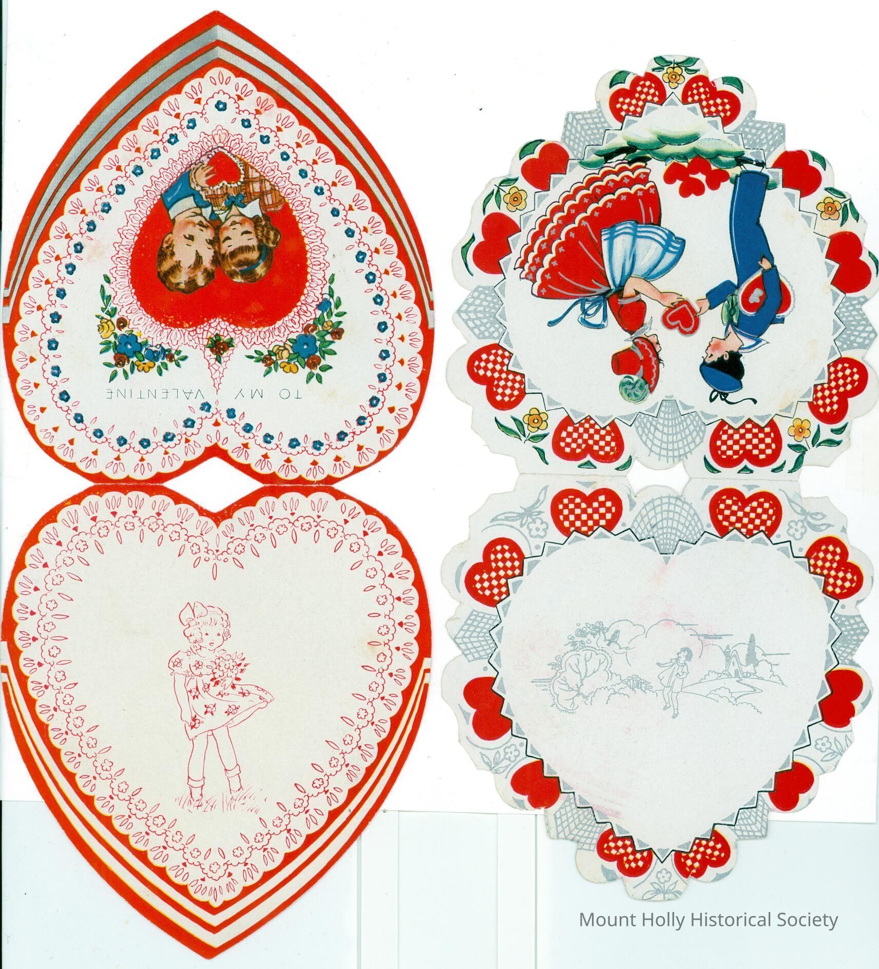 Two Valetine's Day cars from Mae Tucker to unknown recipients (front and back scanned)