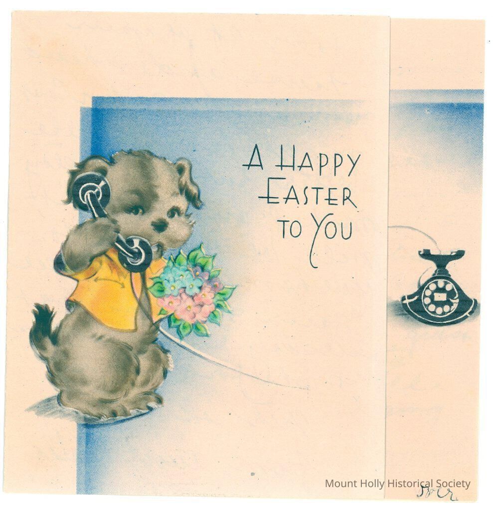 Easter card from Aunt Bertha to Mae Tucker, mentioning marriage of Miss Bumgardner and recovery from illness of Uncle John