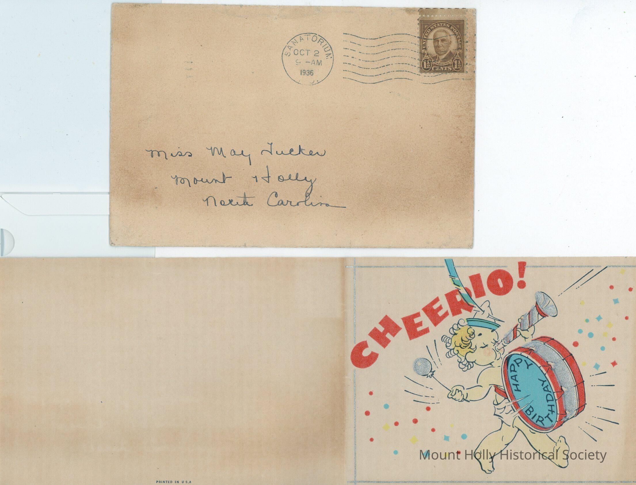 Birthday card (with envelope) from Mae Springs to Mae Tucker
