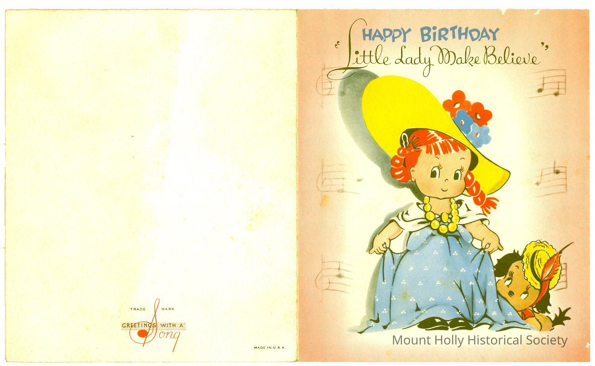 Birthday card with lyrics and notations inside (unfolded and scanned), but no handwritten message
