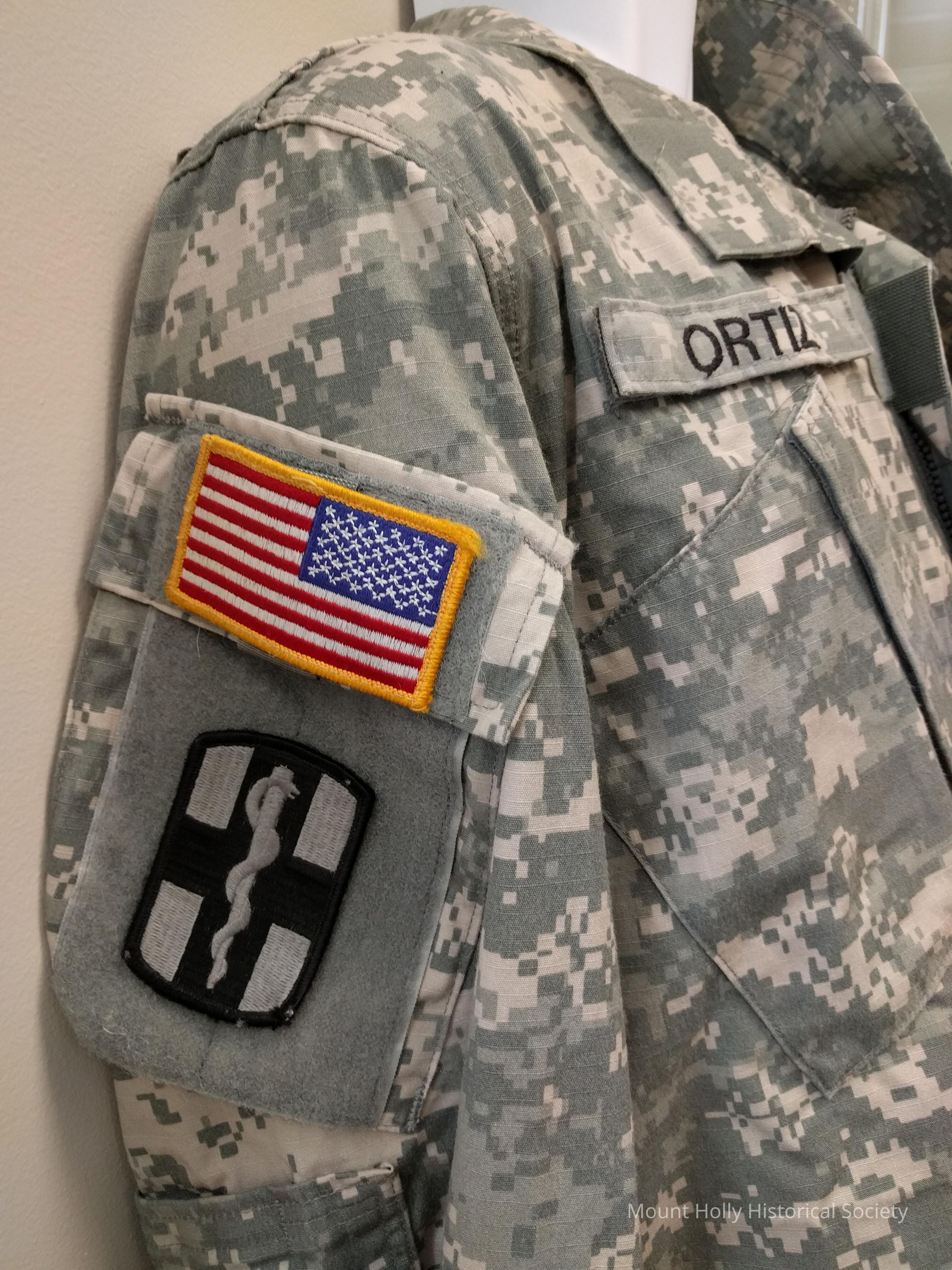 Camoflage US Army BDU Field uniform, with hat, name tag Ortiz