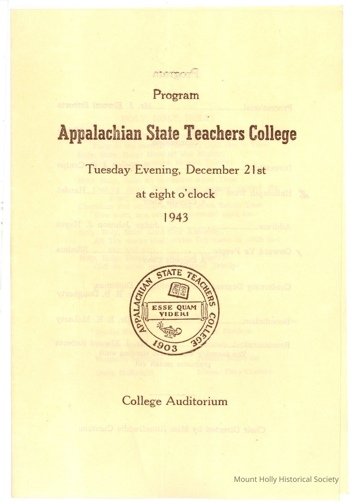 Program for Mae Tucker's graduation at Appalachian State Teachers College (only front page scanned)