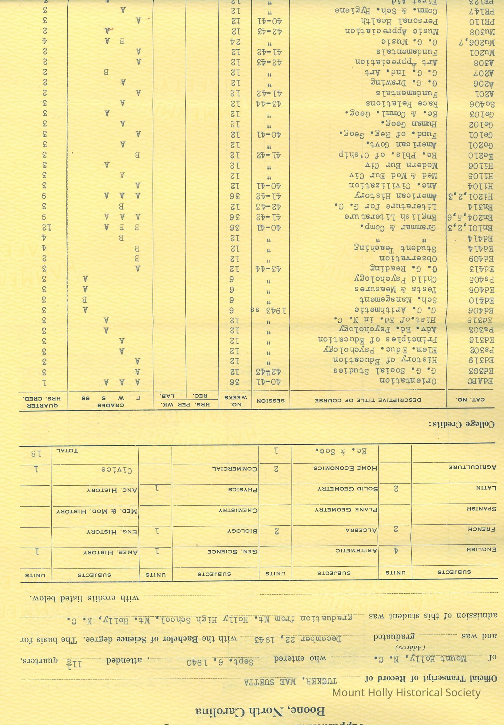 Official transcript for Mae Tucker from Appalachian State Teachers College (only front scanned)