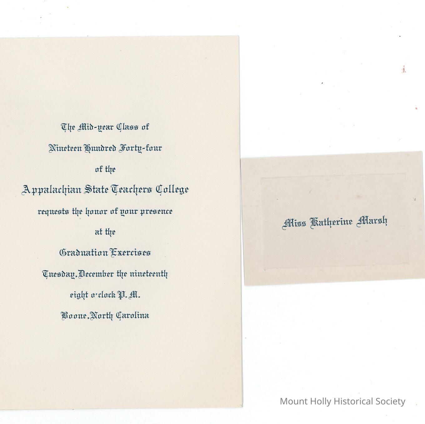 Announcement for Katherine Marsh's graduation from Appalachian State Teachers College, Dec. 19, 1944
