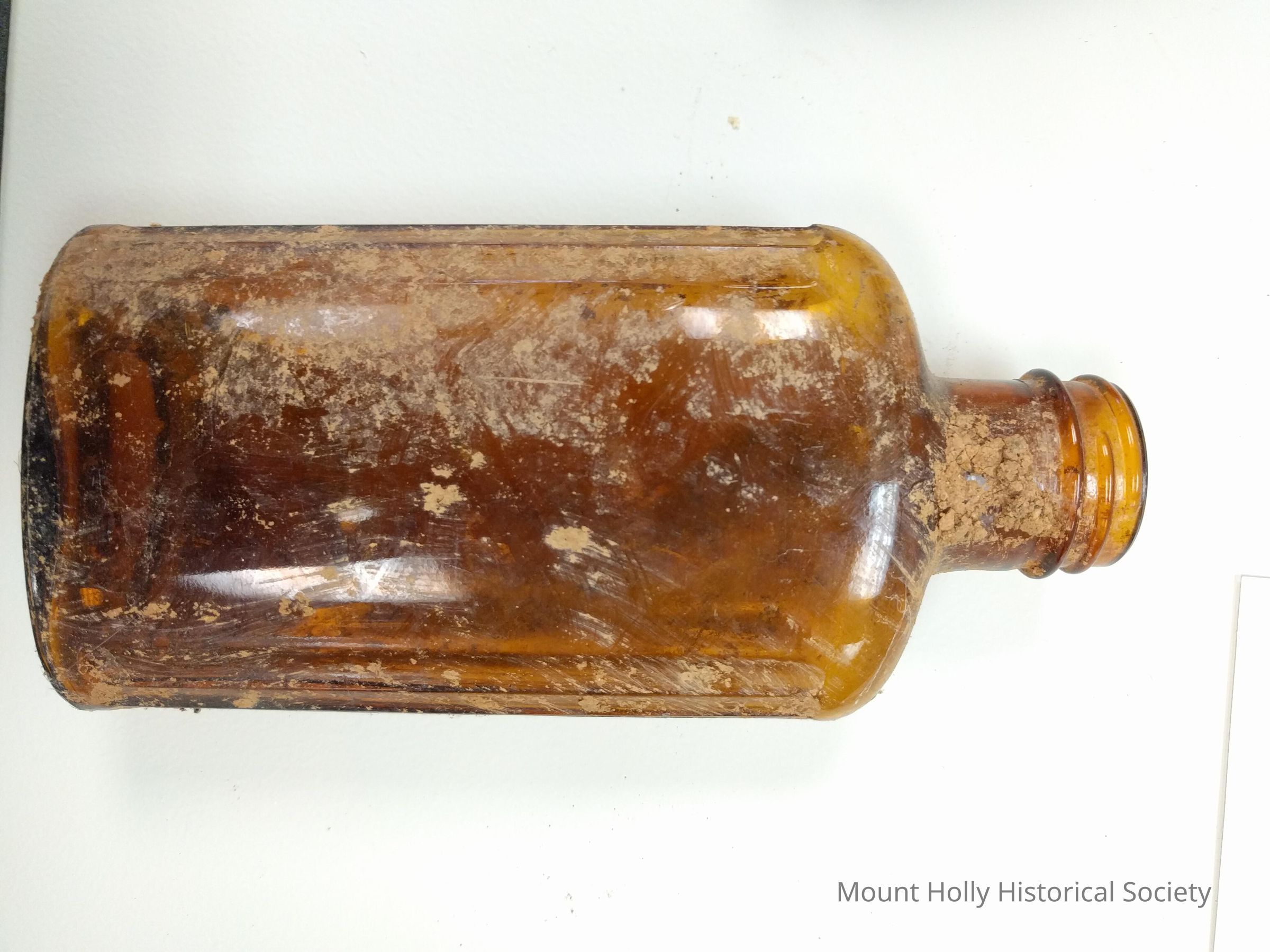 Amber glass bottle, 7" tall Found at site of Mountain Island Mill Village Flood
