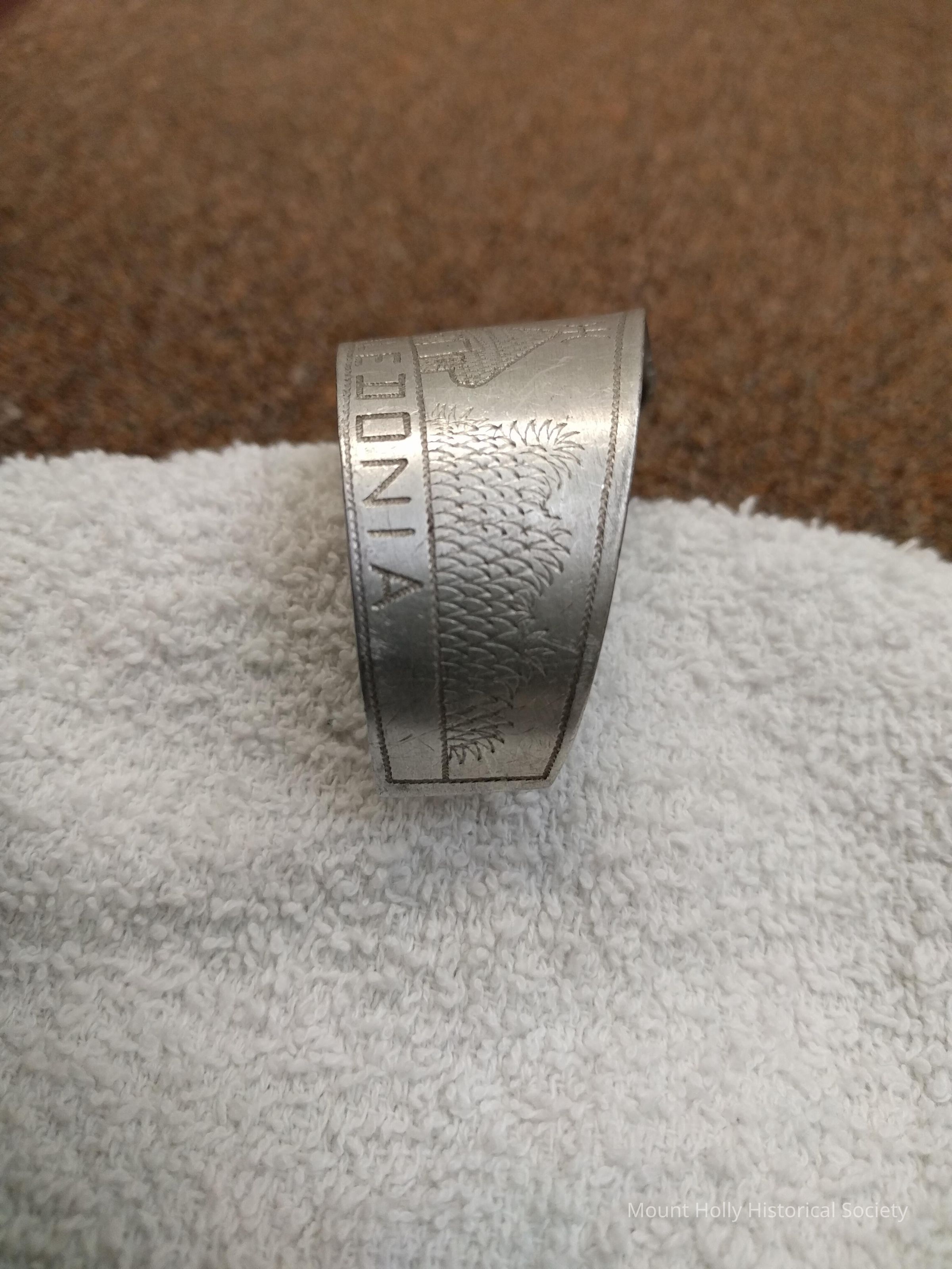 Aluminum bracelet made from Japanese "Zero" fighter plane shot down and crashed in New Caledonia in South Pacific (WWII) Inscribed "US Navy / New Caledonia"