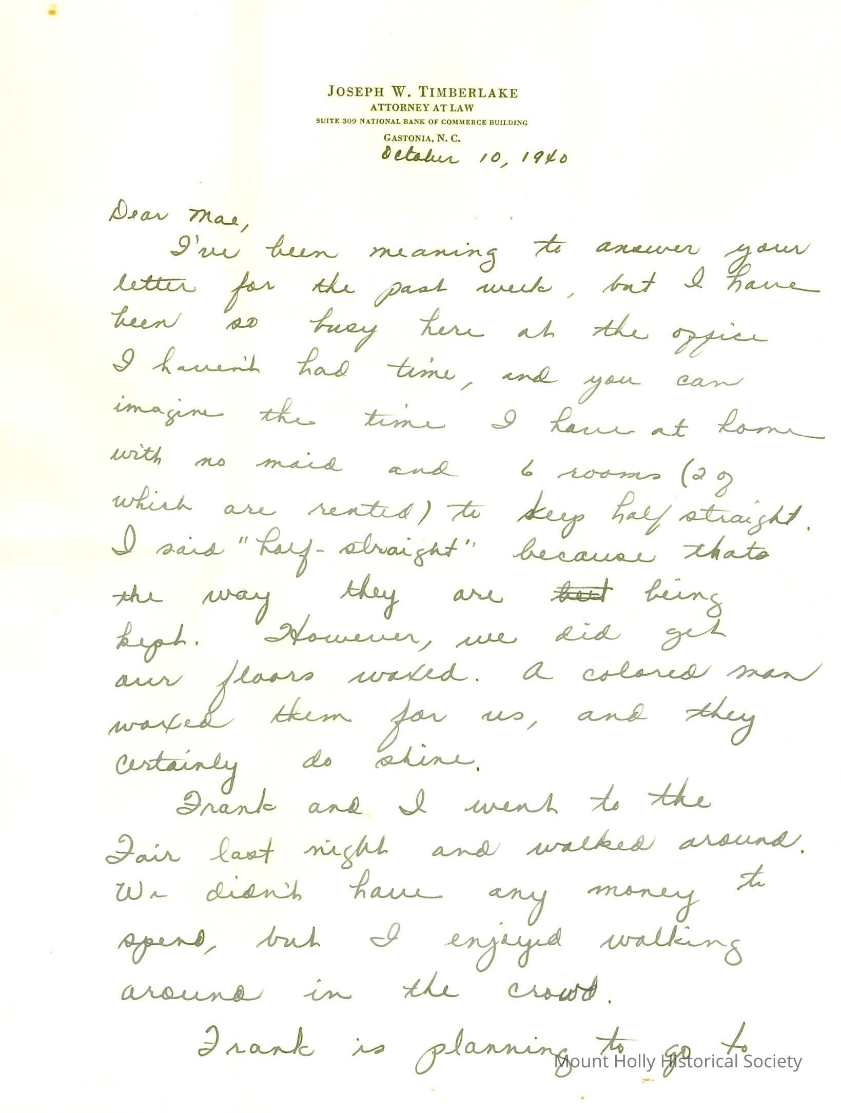 Letter from Shirley to Mae Tucker, discussing mundane events (all three pages and envelope scanned)
