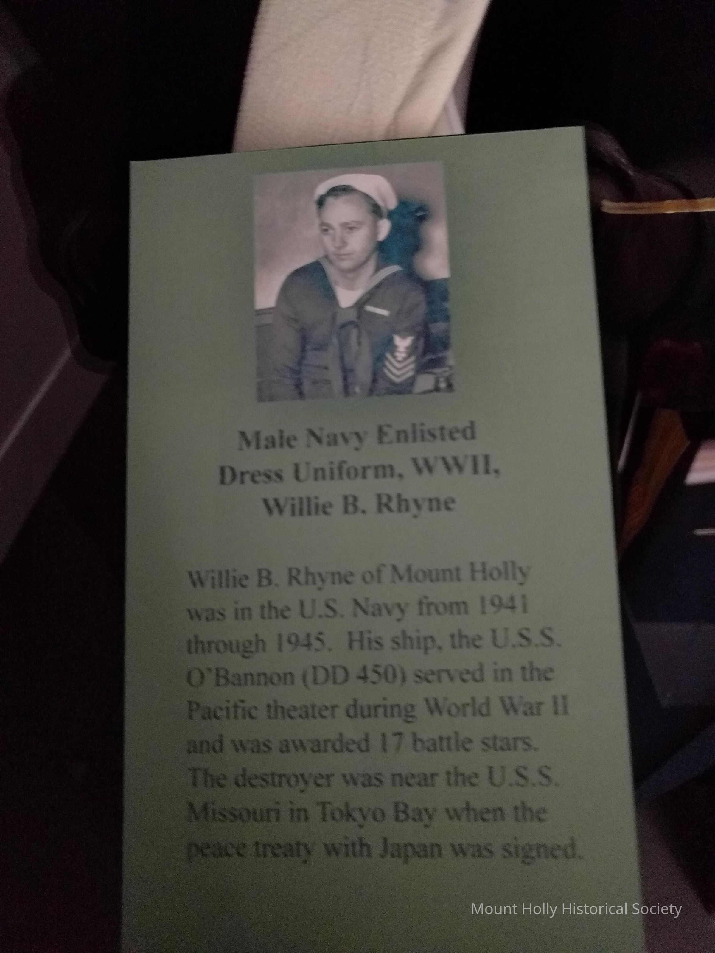 Male navy enlisted dress uniform WWII Willie B. Rhyne