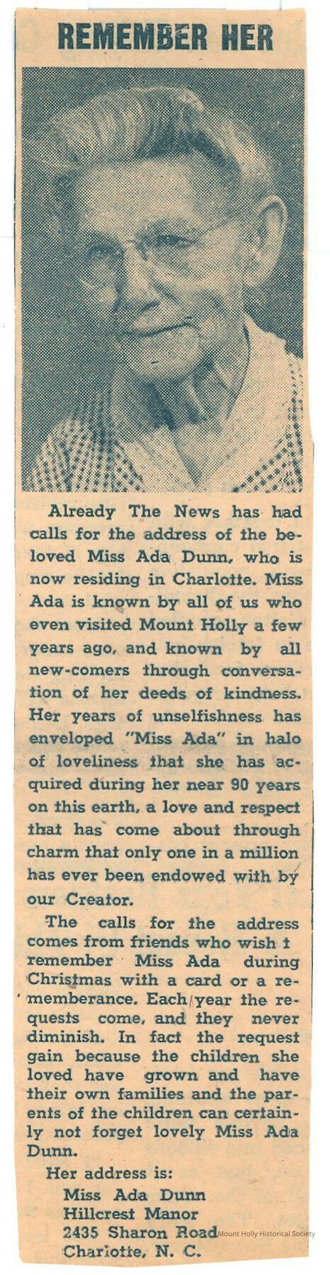 Newspaper article providing mailing address of Ada Duncan and encouraging readers to write to her