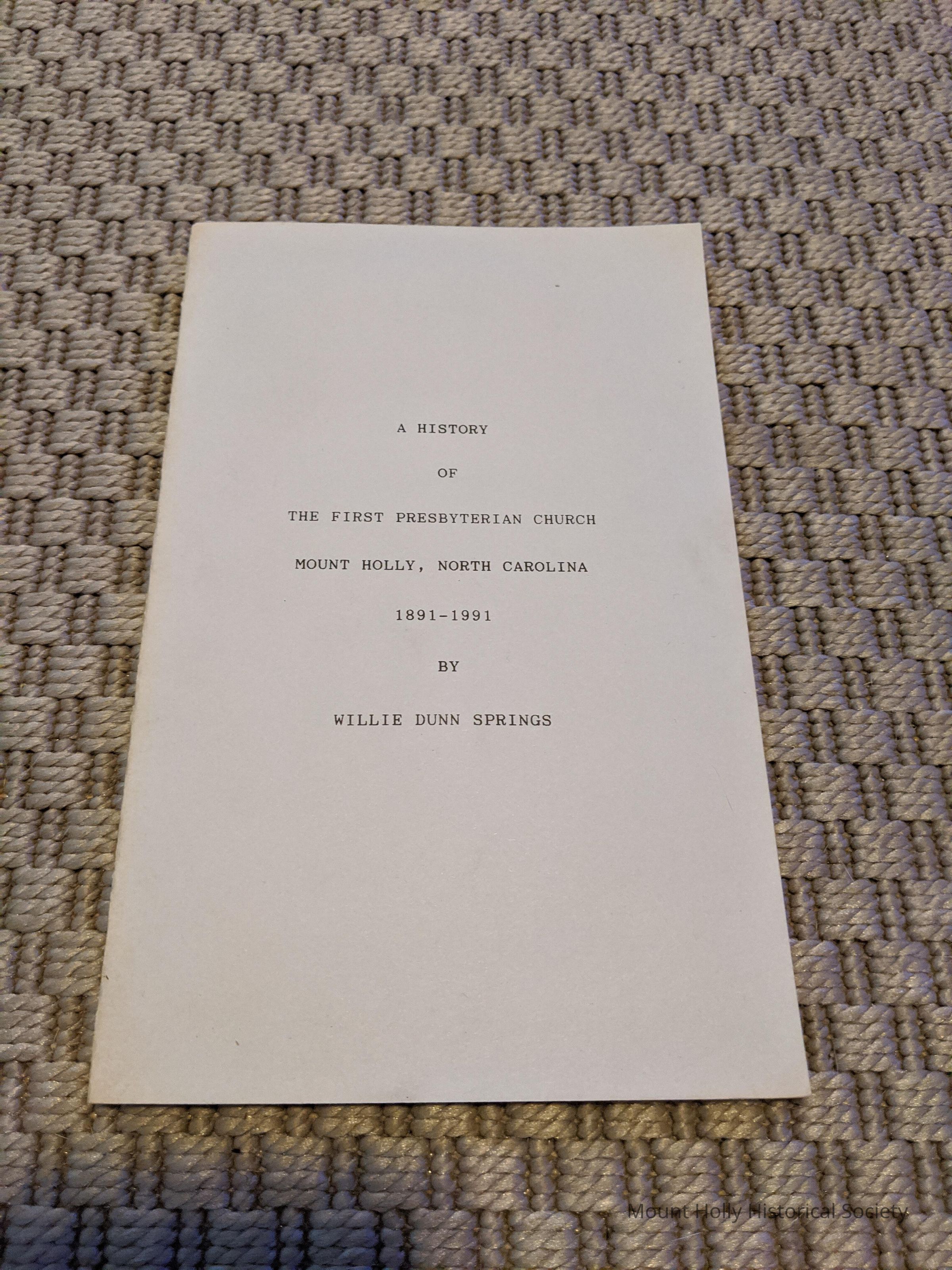 History of First Presbyterian Church Mount Hollly 1891-1991 by Willie Dunn Springs - Donated by Becky Farrar
