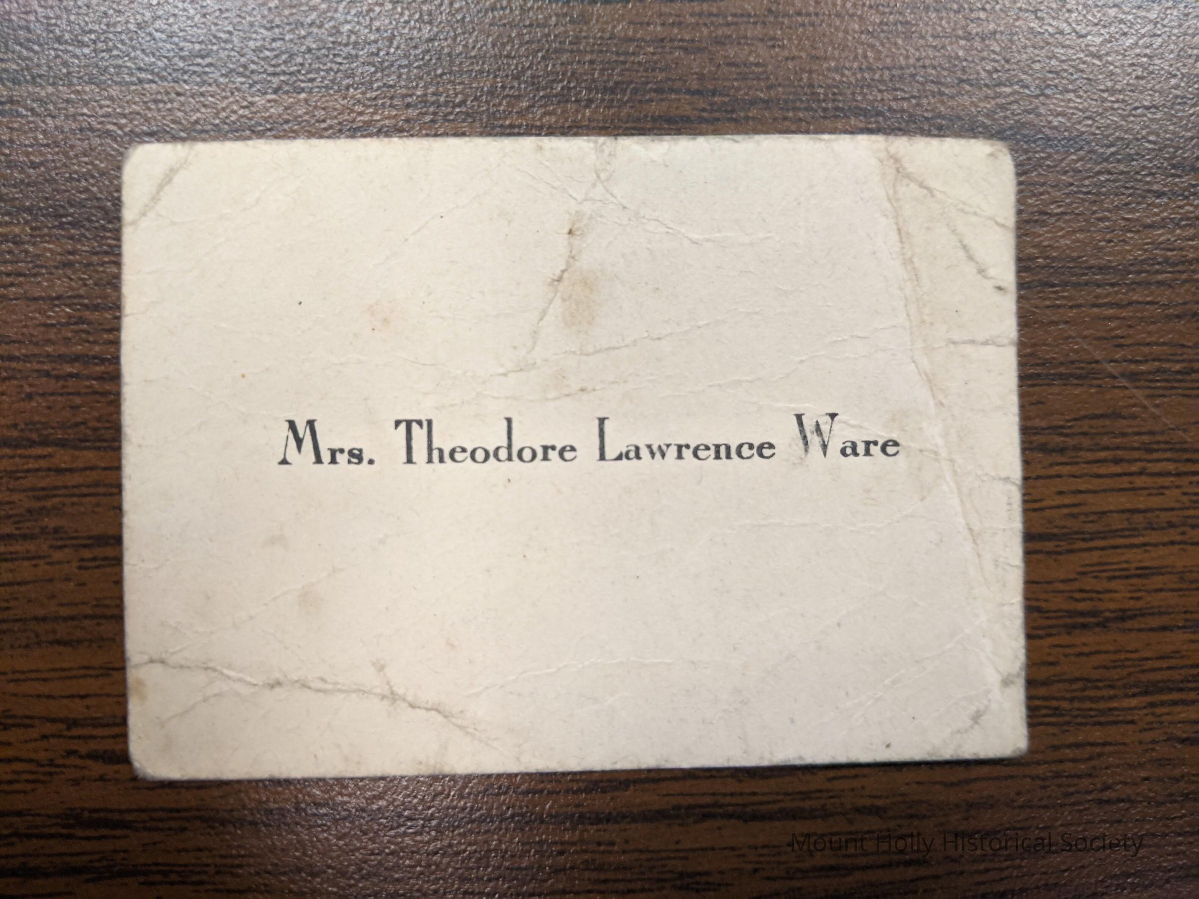 Mrs. Theodore Lawrence Ware calling card (Mary Etta Ware), on back "Mary's 37139"