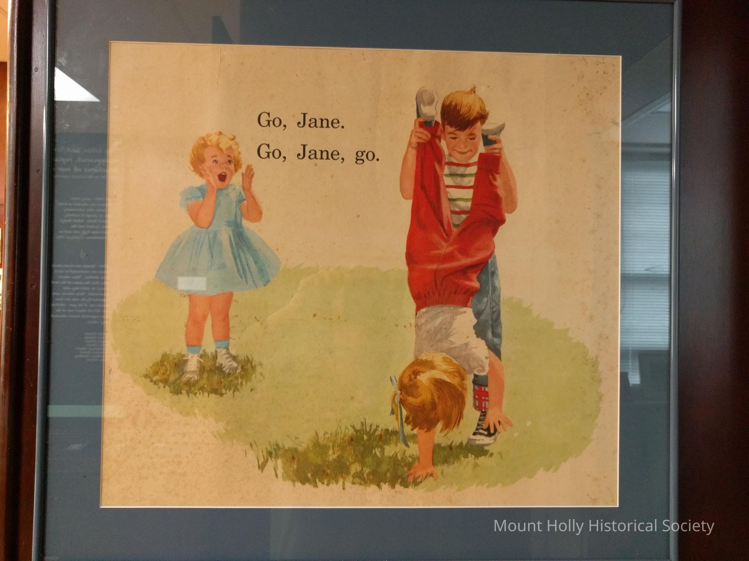 Framed print of Dick and Jane book page "Go, Jane. Go, Jane, go."