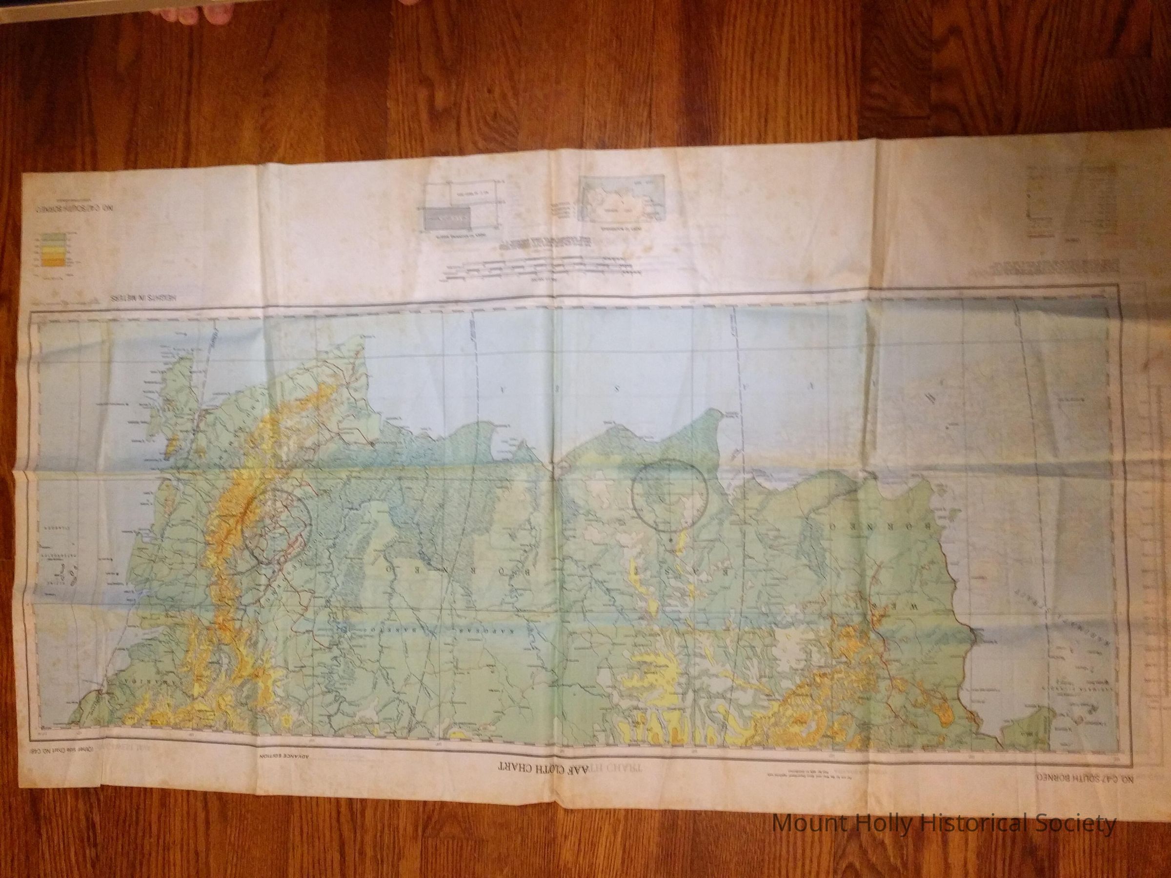 Silk map - AAF Cloth Chart (front and back) Borneo, in color