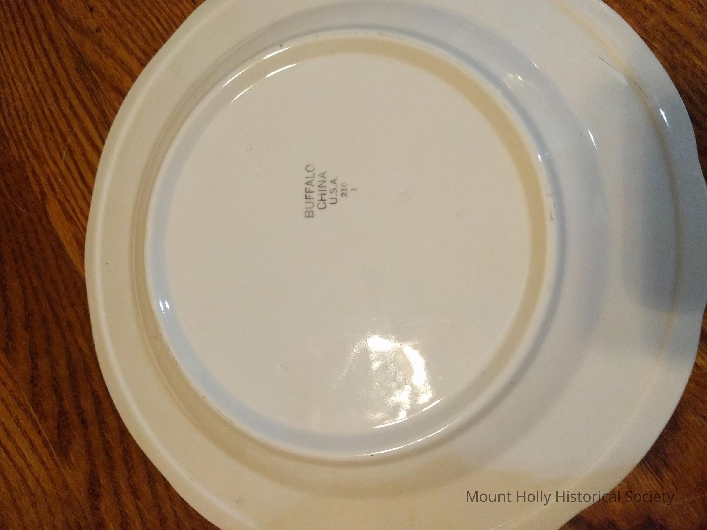 "Mount Holly December 82" commemberative plate, picture of rail road underpass "Buffalo China USA 210/1"