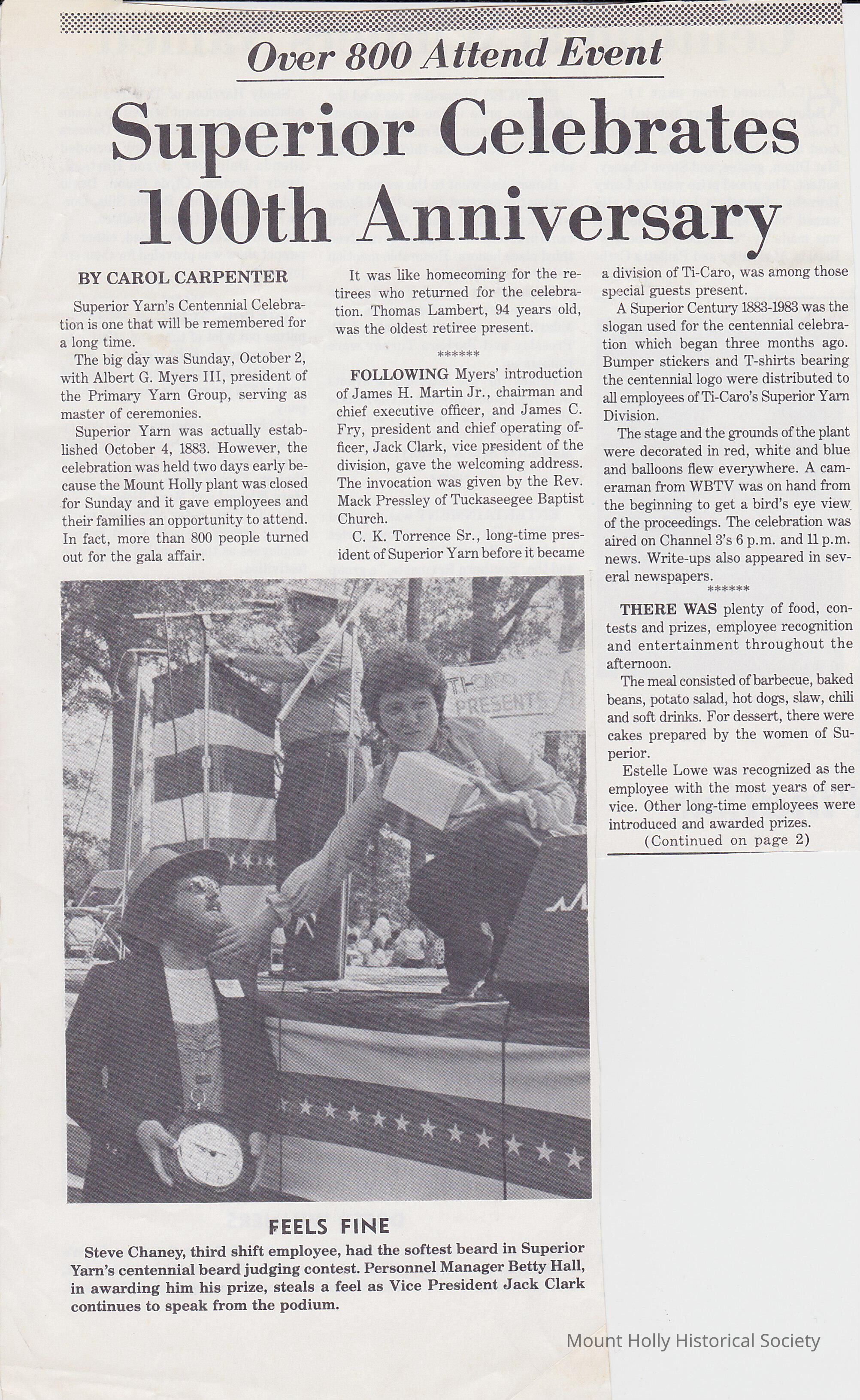Collection of newspaper articles of "Superior Celebrates 100th Anniversary"