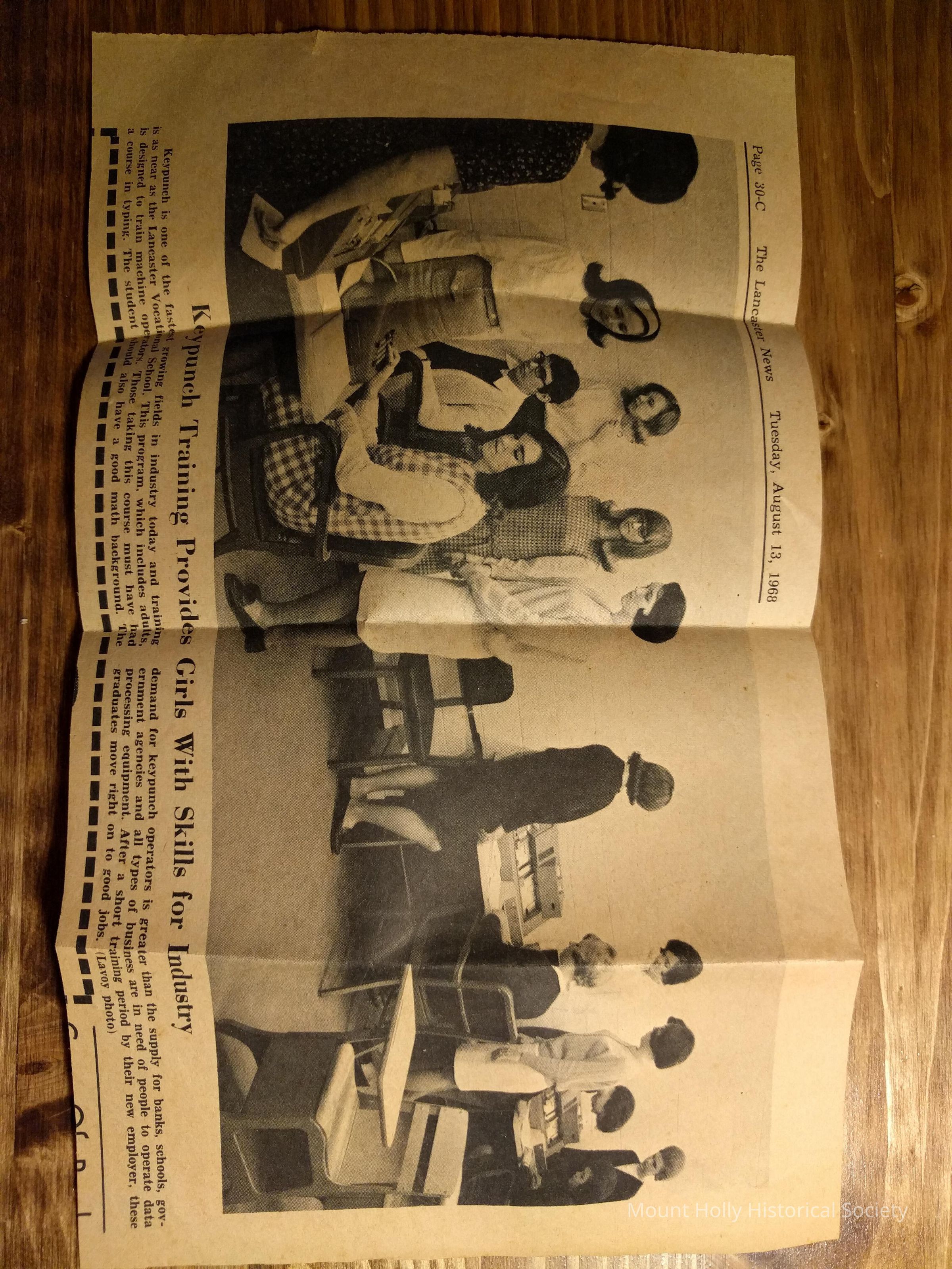 Lancaster News, newspaper clipping, "Keypunch Training provides girls with skill for industry"