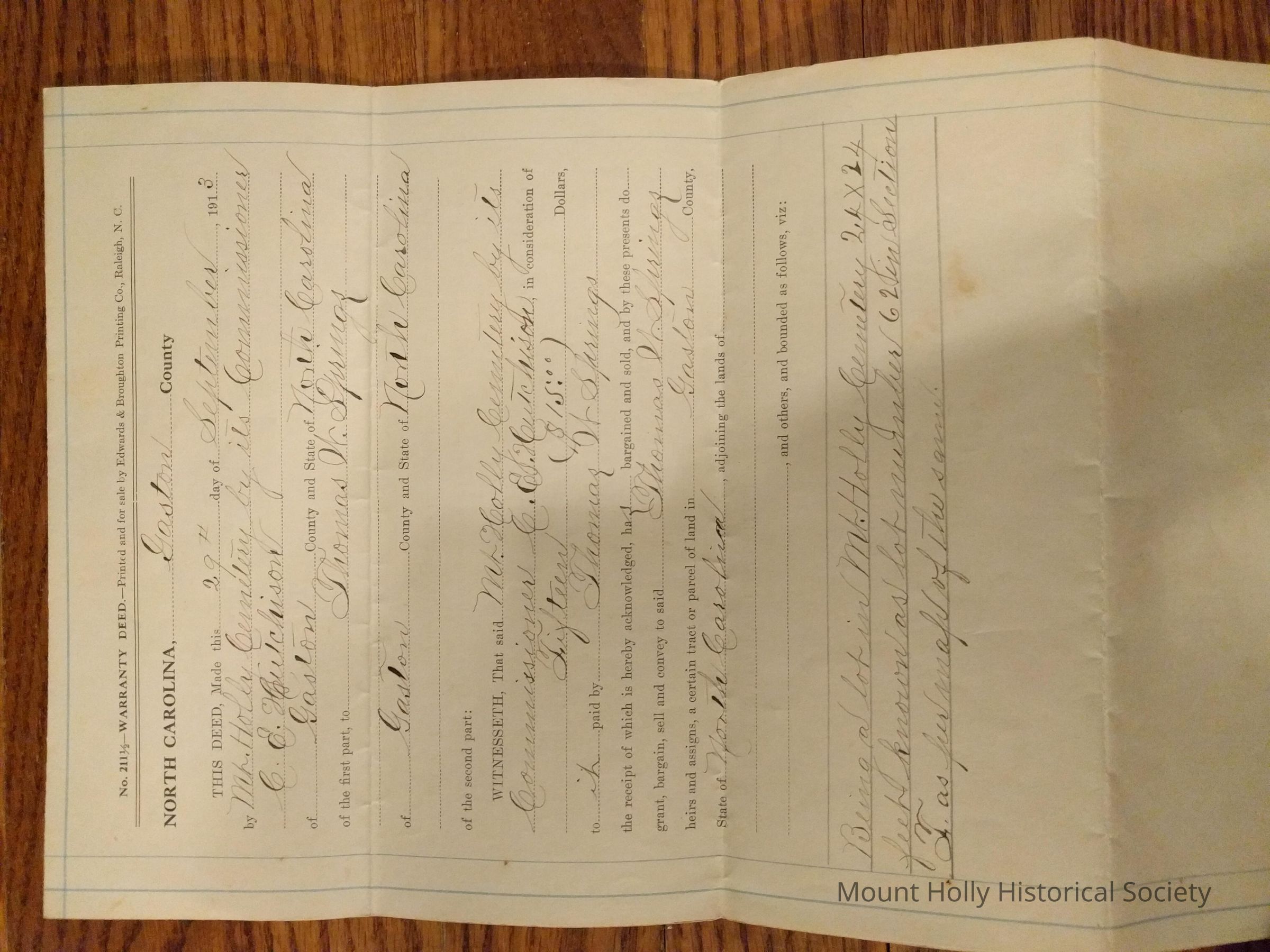 Warranty Deed Mount Holly Cemetery Thomas W. Springs
