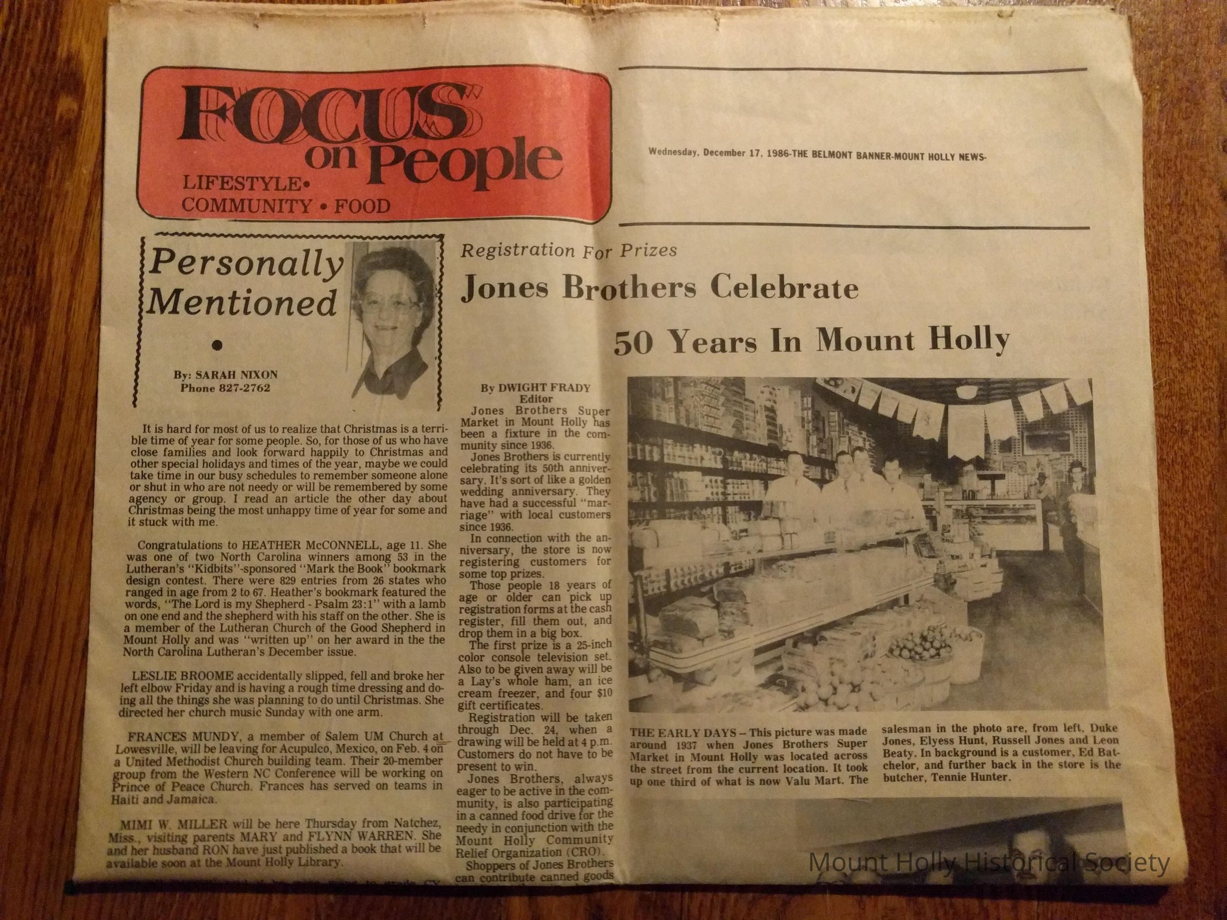 Newspaper Focus on People "Jones Brothers Celebrate 50 Years in Mount Holly"