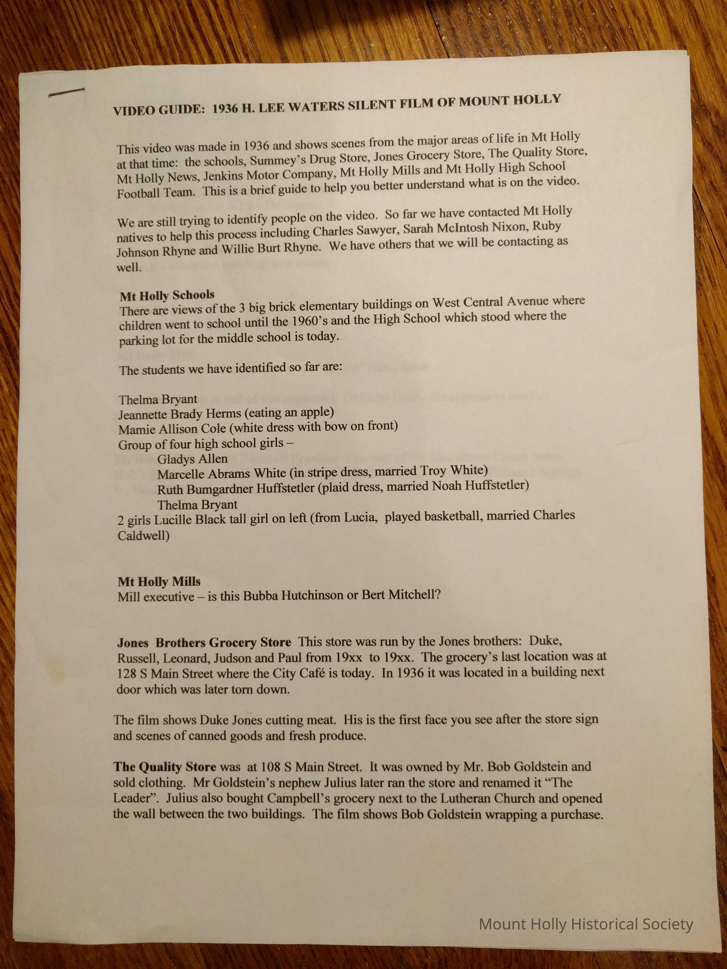 Video guide 1936 H. Lee Waters Silent Film of Mount Holly