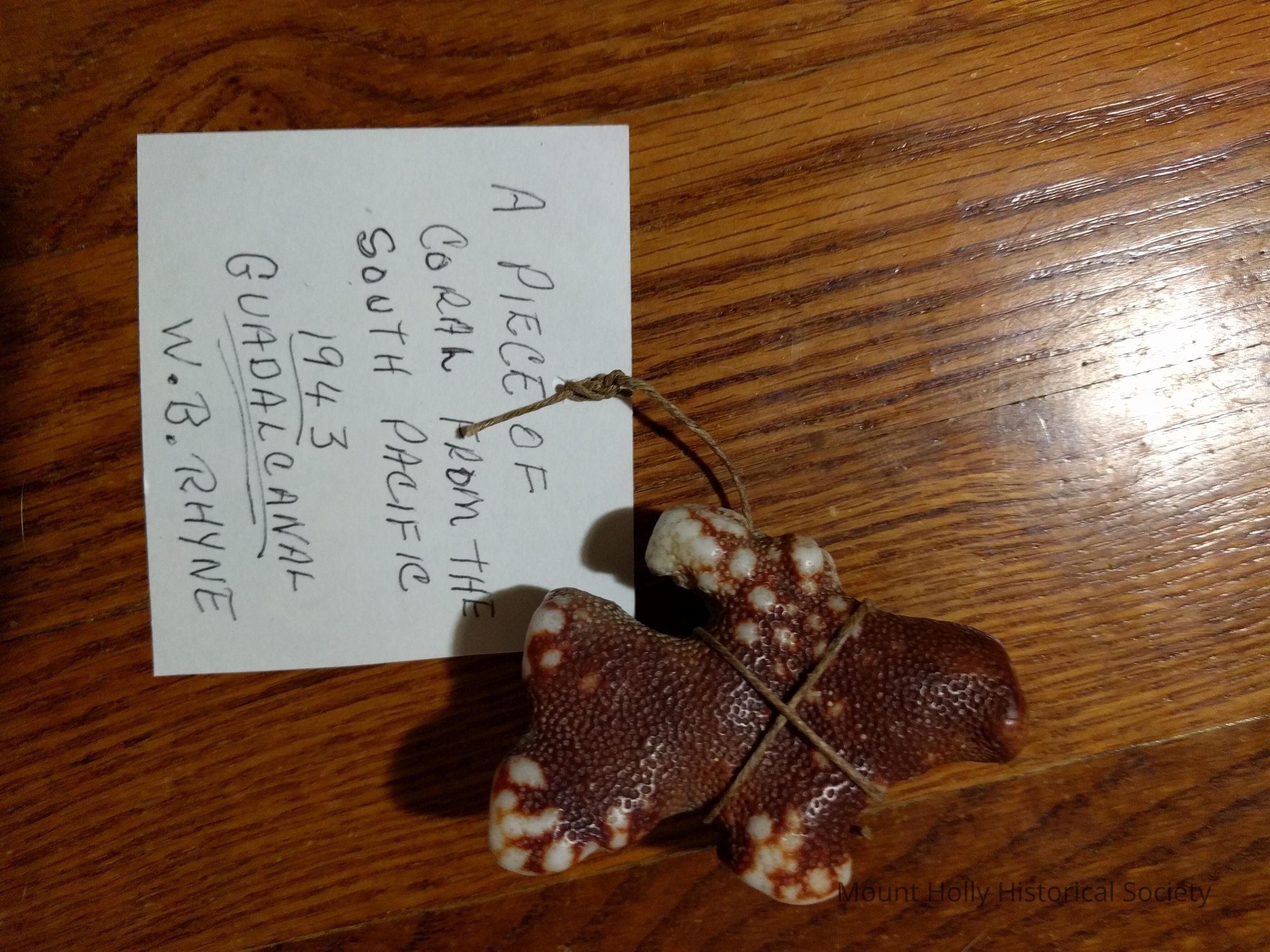 "A piece of coral from the South Pacific 1943 Guadalcanal - W B Rhyne