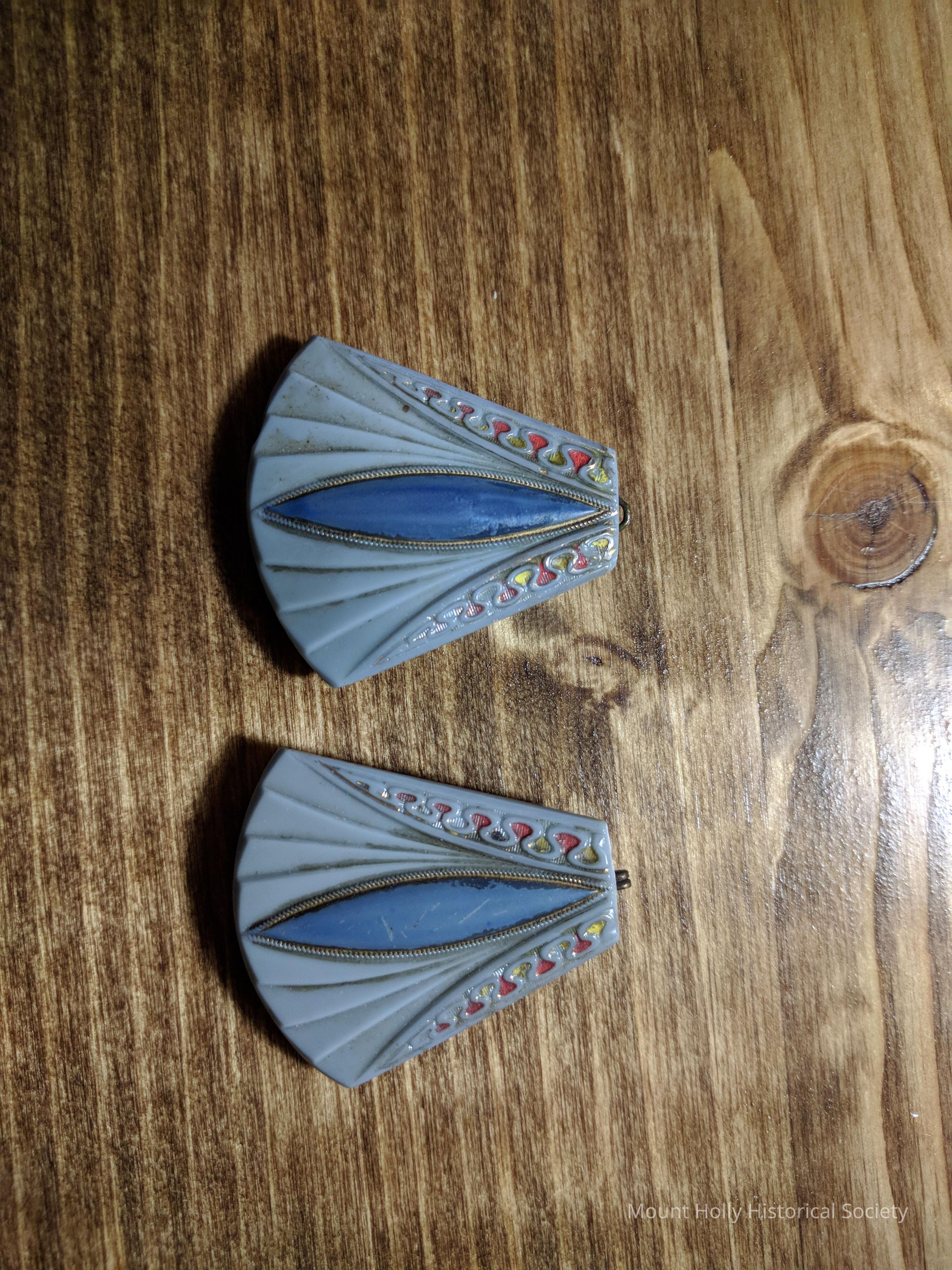 Belt Clasps (2), gray for design with blue center - Family of Mae Tucker