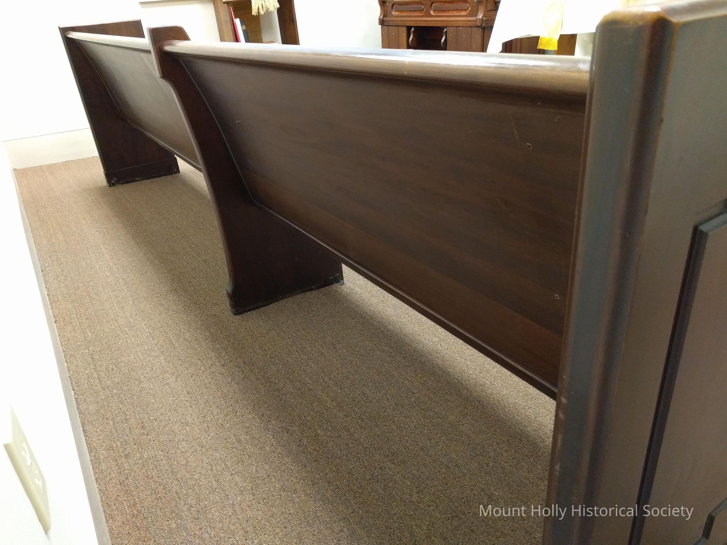 Wooden pew with two sections From First Presbyterian Church, donated during renovations